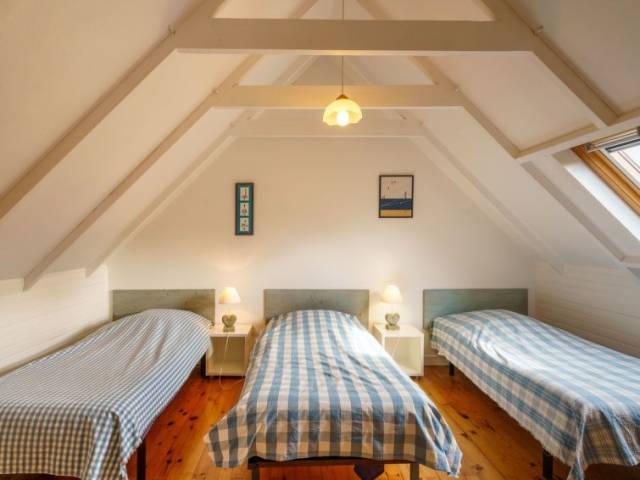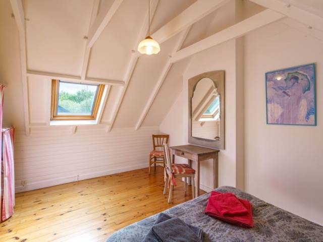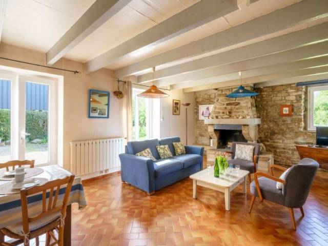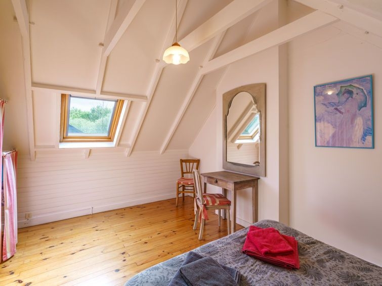 "Pen Ilis", casa 3 estancias 80 m2 en 2 plantas. Con mobiliario bonito: salón-comedor 40 m2 con chimenea y TV (pantalla plana). Cocina abierta (horno, lavavajillas, 3 Placas de inducción, tostadora, hervidor de agua eléctrico, microondas, cafetera eléctrica). WC separado. Calefacción. Planta superior: 1 dorm., abuhardillado con 1 cama de matrimonio (1 x 140 cm, 190 cm de longitud). 1 dorm., abuhardillado con 3 camas (90 cm, 190 cm de longitud). Baño, WC separado. Terraza 20 m2, orientación sureste. Muebles de terraza, barbacoa, tumbonas (2). El alojamiento dispone de: lavadora, trona, cuna hasta 3 años, secador de pelo, leña (gratis). Internet (Wifi, gratis). A tener en cuenta: casa para no fumadores. Detector de humo.