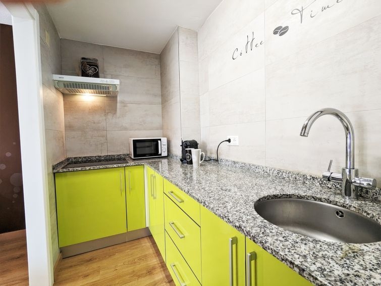 "Coblanca 32", apartamento de 2 estancias 60 m2 en el 3° piso, orientación este. Vivienda adecuada para 4 adultos. Luminoso, con mobiliario funcional y confortable: salón-comedor 16 m2 con 1 cama-nido (2 x 90 cm, 190 cm de longitud), TV digital, aire acondicionado y bomba de calor, caliente. Salida al balcón acristalado. 1 dorm. 9 m2 con 1 cama de matrimonio (150 cm, 190 cm de longitud), aire acondicionado y bomba de calor, caliente. Rincón-cocina (3 placas de vitrocerámica, tostadora, hervidor de agua eléctrico, microondas, congelador, cafetera eléctrica). Baño/bidet/WC. Calefacción eléctrica. Terraza 14 m2. Vista muy bonita al mar, a la piscina, al jardín y a la localidad. El alojamiento dispone de: lavadora, plancha, secador de pelo. Internet (Wifi, gratis). Plaza de aparcamiento n. S/N. VT-323971-BM
