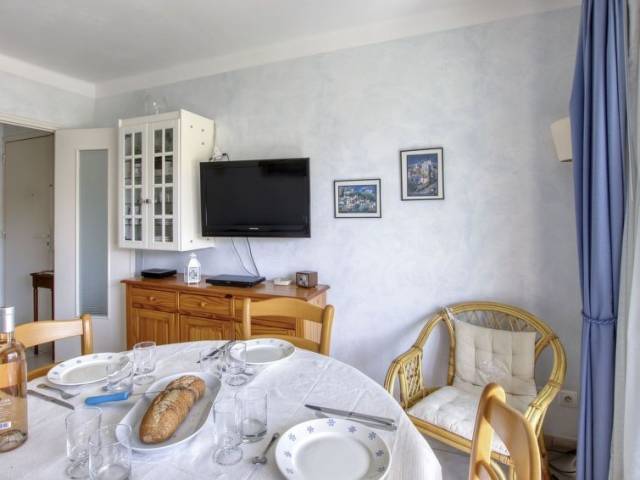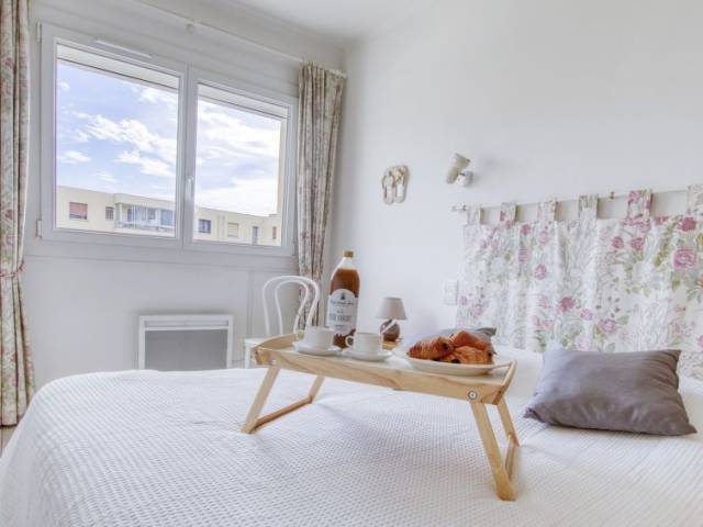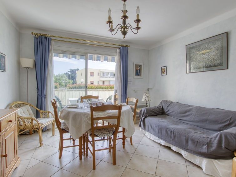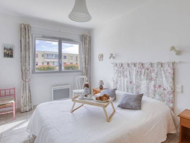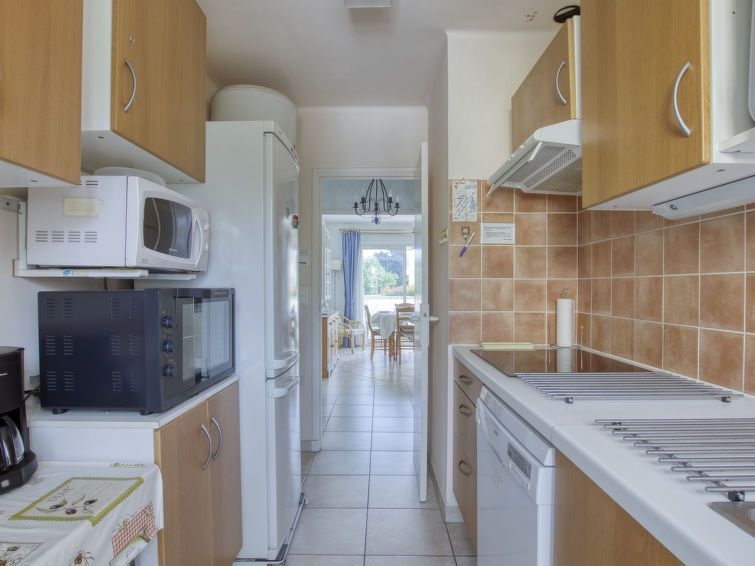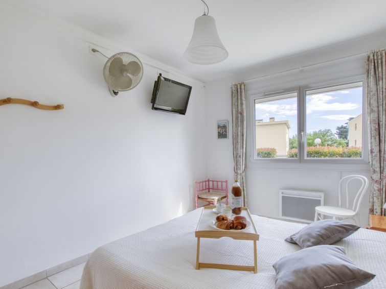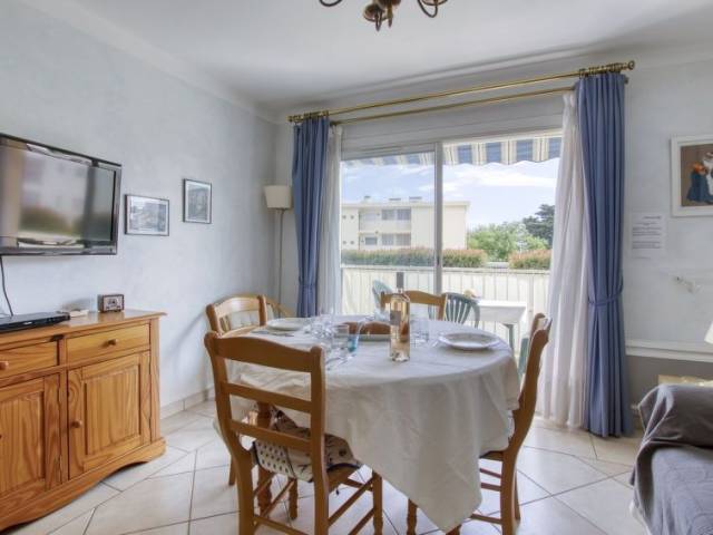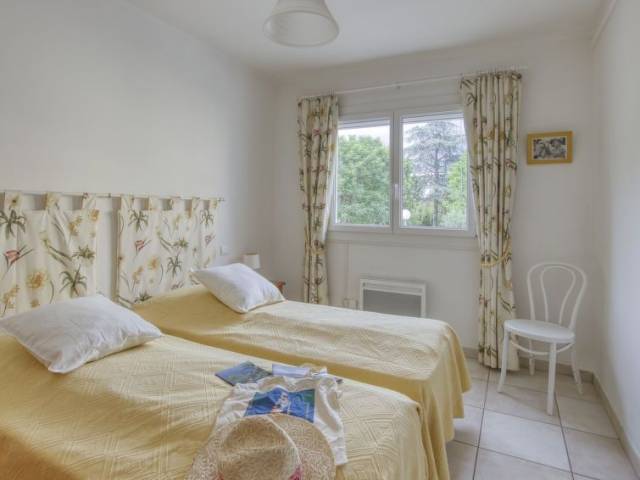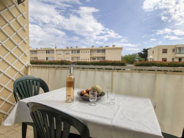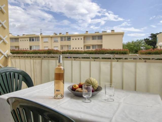 Apartamento de 3 estancias 60 m2, en planta baja elevada. Luminoso, con mobiliario funcional y confortable: salón-comedor con TV (pantalla plana), DVD. Salida al balcón. 1 dorm. con 1 cama de matrimonio (140 cm, 190 cm de longitud), TV (pantalla plana). 1 dorm. con 2 camas (80 cm, 190 cm de longitud). Cocina (4 fogones, horno, lavavajillas, microondas, congelador, cafetera eléctrica). Ducha, WC separado. Calefacción eléctrica. Balcón 4 m2, orientación suroeste. Muebles de terraza. El alojamiento dispone de: lavadora, plancha, cuna hasta 2 años. Internet (Wifi, gratis). A tener en cuenta: TV solamente FR. Detector de humo. A tener en cuenta: el balcón da al aparcamiento de la residencia.