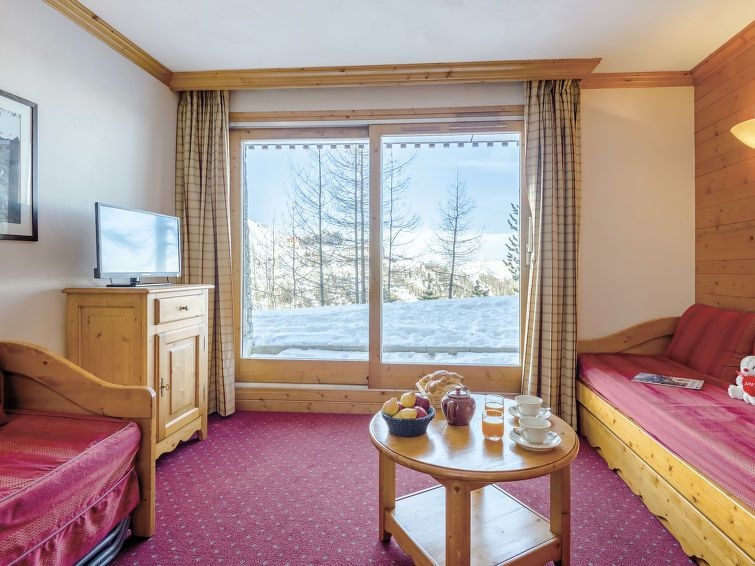 Residencia "Aspen", agradable, confortable. 48 apartamentos en la residencia. En el barrio de Plagne Villages. Comunitario: piscina cubierta climatizada (9 x 6 m, horario piscina: 10:00-19:30). Ducha/WC en zona de piscina. En el complejo: recepción, sala de descanso, Wifi (extra). Sauna (extra). Baño turco (extra). Billar, ascensor, sala guardaesquís, lavadora (extra), secadora (extra). Aparcamiento (extra) a 100 m. Aparcamiento/garaje para vehículos pequeños/medios. Dimensiones: altura 190 cm. Tienda, restaurante 300 m. Telesquí 300 m, pistas de esquí 100 m. Zonas de esquí populares fácilmente accesibles: Peisey-Vallandry 30 km, Montchavin 13 km. A tener en cuenta: horario de recepción de 17:00-20:00 horas. A tener en cuenta: La foto corresponde a una de las viviendas. Los alojamientos pueden diferir en la superficie habitable, la distribución de las estancias, el equipamiento y el mobiliario.