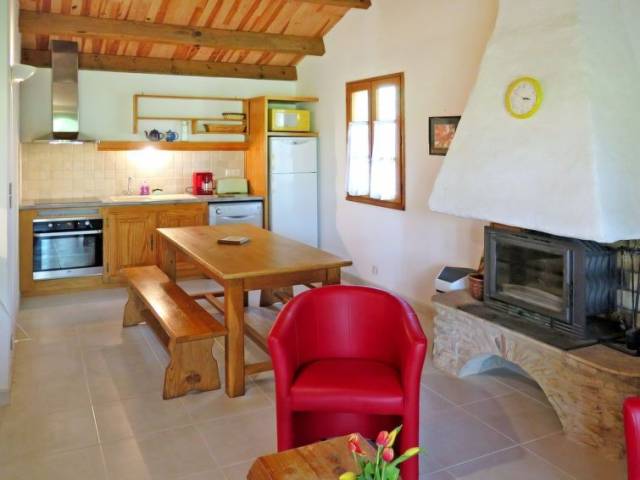 "Le Chêne", casa 3 estancias 75 m2. Vivienda adecuada para 2 adultos + 2 niños. Con mobiliario funcional: salón-comedor con chimenea, mesa de comedor y TV (pantalla plana). Salida a la terraza. 1 dorm. con 1 cama de matrimonio (140 cm, 190 cm de longitud). 1 dorm. con 2 camas (90 cm, 190 cm de longitud). Cocina abierta (horno, lavavajillas, 4 Placas de inducción, tostadora, hervidor de agua eléctrico, microondas, congelador, cafetera eléctrica). Ducha, WC separado. Calefacción eléctrica. Terraza parcialmente cubierta. Muebles de terraza, barbacoa, tumbonas (2). El alojamiento dispone de: lavadora, cuna, leña (extra). Internet (Wifi, gratis). A tener en cuenta: casa para no fumadores. Permitido máximo 1 mascota pequeña / perro. Detector de humo.