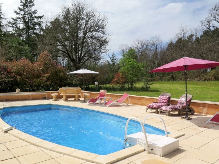 Casa de campo "Le Coustal", bonita, rodeada de árboles y prados. A 4 km del centro de Lacapelle-Biron, a 17 km del centro de Fumel, a 60 km del centro de Cahors, lugar aislado, tranquilo. Privado: terreno en estado natural 3 ha, piscina occulta desde el exterior (8 x 4 m, 120 - 180 cm de profundidad, Disponible por temporada: 30.Mar. - 02.Nov.) con escalera interior y alarma. Terraza, muebles de jardín, caseta de barbacoa. Acceso (1 km camino de tierra). Aparcamiento (para 2 coches, cubierto) junto a la casa en el mismo terreno. Tienda 4 km, supermercado 17 km. Atracciones en los alrededores: Gavaudun 7 km, Monflanquin 15 km. "Le Coustal (BSB300)", casa 4 estancias 120 m2. Con mobiliario funcional y confortable: salón-comedor con mesa de comedor y TV satélite (pantalla plana), DVD y aire acondicionado. Salida al jardín. 1 dorm. con 1 cama de matrimonio (160 cm, 200 cm de longitud). 1 dorm. con 1 cama (90 cm, 190 cm de longitud), 1 cama de matrimonio (140 cm, 190 cm de longitud). Cocina (horno, lavavajillas, 2 Placas de inducción, 2 fuegos, tostadora, hervidor de agua eléctrico, microondas, congelador, cafetera eléctrica) con estufa de lena y aire acondicionado. Salida al jardín. Baño/ducha, WC separado. Calefacción eléctrica, aire caliente. Terraza. Muebles de terraza, barbacoa, tumbonas. El alojamiento dispone de: lavadora, plancha, trona, cuna. Internet (Wifi, extra). A tener en cuenta: permitido máximo 2 mascotas / perros. Detector de humo.