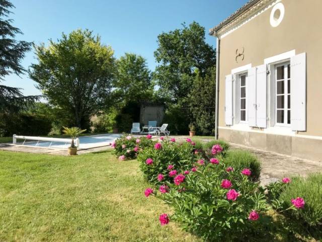 Casa de campo "La Gaubide", agradable. En un aldea, a 4.5 km del centro de Castillonnès, a 26 km del centro de Bergerac, a 35 km del centro de Villeneuve-sur-Lot, a 5 km del río. Comunitario: terreno 4 ha. Privado: terreno 2'500 m2, árboles, pradera, piscina (8 x 4 m, 106 - 180 cm de profundidad, Disponible por temporada: 27.Abr. - 28.Sep.) con sistema de cobertura. Terraza, aparcamiento junto a la casa en el mismo terreno. Tienda 5 km, supermercado 7 km, lago "Lougratte" 10 km. Campo de golf (18 hoyos) 20 km, tenis 5 km, centro ecuestre 5 km, Posibilidades de pesca 3 km. Atracciones en los alrededores: Villeneuve-sur-Lot 30 km.
