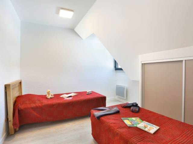 "La Soulane", apartamento de 5 estancias 80 m2 en 3 plantas. Salón-dormitorio con 1 sofá-cama doble (2 x 90 cm, 190 cm de longitud), chimenea, mesa de comedor y alquiler de TV opcional (pantalla plana). Salida al balcón, a la terraza. Rincón-cocina (lavavajillas, 4 placas de vitrocerámica, tostadora, hervidor de agua eléctrico, microondas, congelador, cafetera eléctrica). Ducha/WC. Planta superior: 2 dorm., cada habitación con 1 cama de matrimonio (140 cm, 190 cm de longitud). 1 dorm. con 2 camas (90 cm, 190 cm de longitud). Baño/WC. Planta superior 2: 1 dorm., abuhardillado con 2 camas (90 cm, 190 cm de longitud). Calefacción eléctrica. Balcón pequeño o terraza pequeña. Muebles de balcón. Vista al lago y a las montañas. El alojamiento dispone de: plancha, trona (extra). Internet (Wifi, extra). A tener en cuenta: apartamento para no fumadores. Permitido máximo 1 mascota / perro. Detector de humo. El alojamiento es una casa tipo ejemplo o un apartamento tipo ejemplo.