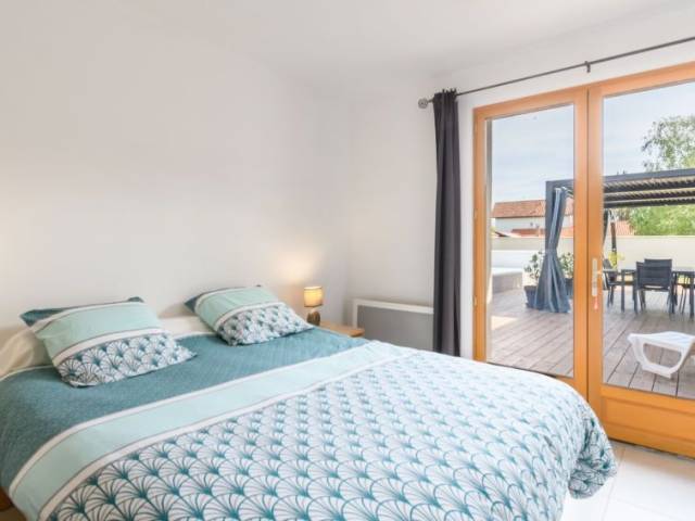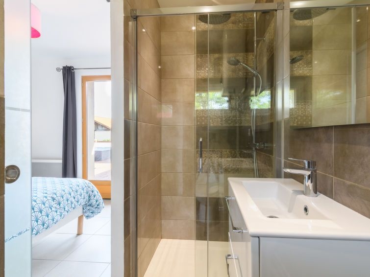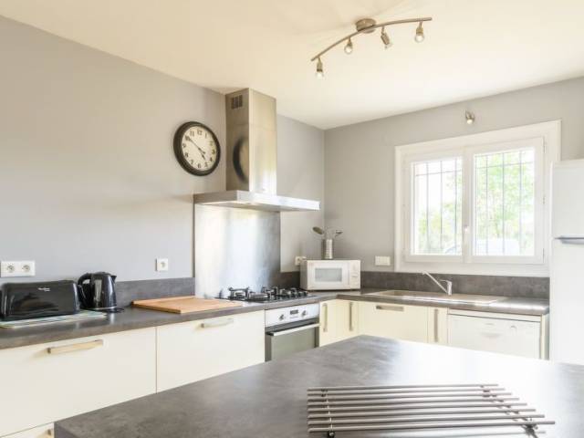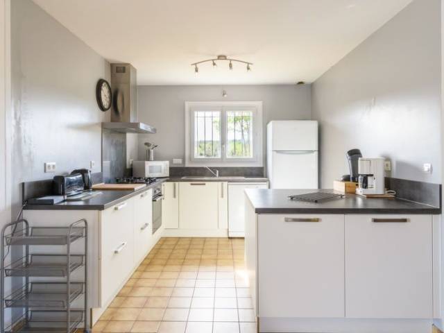 Casa unifamiliar "Petrocq", reformada en 2021, rodeada de prados y campos. En el barrio de Petrocq, a 2.5 km del centro de Lit-et-Mixe, a 7 km del centro de Saint-Julien-en-Born, a 23 km del centro de Mimizan, a 6.5 km del mar, en una calle sin salida. Privado: terreno 4 ha, jardín 2'000 m2 (vallado) con césped y árboles, piscina climatizada (9 x 4 m, 130 cm de profundidad, Disponible por temporada: 01.May. - 31.Oct.) con sistema de cobertura y sistema de limpieza por electrolysis de sal. Terraza (130 m2). Acceso (100 m camino de tierra). Aparcamiento junto a la casa en el mismo terreno. Tienda 2.5 km, supermercado 3.5 km, playa de arena 6.5 km. Campo de golf (18 hoyos) 30 km. "Petrocq (LIT120)", casa 5 estancias 110 m2. Con mobiliario bonito y agradable: salón-comedor con mesa de comedor, barra americana y TV satélite (pantalla plana). Salida a la terraza. 2 dorm., cada habitación con 1 cama de matrimonio (140 cm, 190 cm de longitud), ducha/WC. 1 dorm. con 1 cama de matrimonio (140 cm, 190 cm de longitud). 1 dorm. con 2 camas (120 cm, 190 cm de longitud). Cocina abierta (horno, lavavajillas, 4 fuegos, tostadora, hervidor de agua eléctrico, microondas, congelador, cafetera eléctrica). Ducha, WC separado. Calefacción eléctrica. Terraza parcialmente cubierta. Muebles de terraza, barbacoa, tumbonas (3). Vista bonita al paisaje. El alojamiento dispone de: lavadora, trona, cuna. Internet (Wifi, gratis). A tener en cuenta: casa para no fumadores. Permitido máximo 1 mascota / perro. Detector de humo.