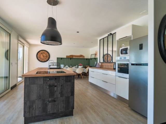 Casa 4 estancias 100 m2. Vivienda adecuada para 4 adultos + 2 niños. Luminoso, completamente reformada en 2023, con mobiliario bonito y agradable: salón-comedor con ventanal con mesa de comedor. Salida a la terraza. Sala de estar pequeña con TV (pantalla plana). 1 dorm. con 1 cama de matrimonio (160 cm, 200 cm de longitud). Salida al jardín. 1 dorm. con 1 cama de matrimonio (140 cm, 200 cm de longitud). 1 dorm. con 2 camas (90 cm, 200 cm de longitud). Cocina abierta (horno, lavavajillas, 3 Placas de inducción, tostadora, hervidor de agua eléctrico, microondas, congelador, cafetera eléctrica). Ducha, WC separado, doble lavabo. Calefacción eléctrica. Terraza grande 90 m2, orientación sureste. Muebles de terraza, barbacoa (portátil), tumbonas (3). Vista bonita al paisaje. El alojamiento dispone de: lavadora, plancha, cuna, secador de pelo. Internet (Wifi, gratis). A tener en cuenta: adecuado para familias. Casa para no fumadores. Detector de humo. Oferta de un particular según el art. 155, IV del CGI.