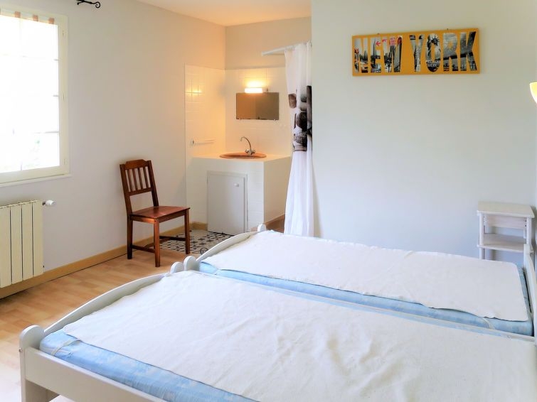 Casa unifamiliar "Orphée", amplia. 2 casas en la residencia. A 2.3 km del centro de Gaillan-en-Médoc, a 1 km del centro de Lesparre-Médoc, a 31 km del centro de Soulac-sur-Mer, en un barrio residencial, a 19.5 km del mar. Privado: jardín 1'800 m2 (vallado) con plantas y árboles, jardín natural, pradera, aparcamiento junto a la casa en el mismo terreno. Tienda 1 km, supermercado 1 km, playa de arena "Naujac-sur-Mer, Plage Pin Sec" 19.5 km. Posibilidades de pesca 13 km. Atracciones en los alrededores: Montalivet 21 km. El propietario vive en una parte independiente de la casa. "Orphée (GEM120)", casa 4 estancias 170 m2. Luminoso, con mobiliario sencillo y funcional: salón-comedor con mesa de comedor y TV satélite (pantalla plana), equipo de música. Salida a la terraza. Salón-dormitorio pequeño con 1 sofá-cama doble (140 cm, 190 cm de longitud). 1 dorm. con 1 cama de matrimonio (160 cm, 200 cm de longitud), lavabo y ducha. 1 dorm. con 1 cama (80 cm, 190 cm de longitud), 1 posibilidad para dormir (90 cm, 190 cm de longitud), lavabo y ducha. Cocina (horno, lavavajillas, 4 fuegos, tostadora, hervidor de agua eléctrico, microondas, congelador, cafetera eléctrica) con pequena mesa de comedor. WC separado. Calefacción de gas. Suelo de parquet. Terraza 60 m2. Muebles de terraza, barbacoa (portátil), tumbonas (2), trastero. El alojamiento dispone de: lavadora, plancha, trona, cuna. Internet (Wifi, gratis). A tener en cuenta: casa para no fumadores. Detector de humo.