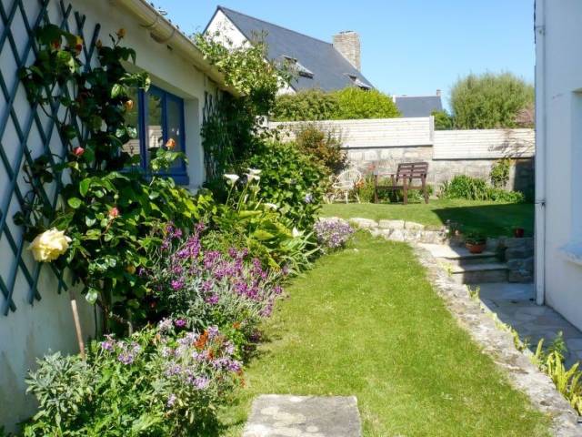 Casa semiadosada "Kersowen", bonita, adosada por un lado. En el barrio de Portez, a 400 m del centro de Le Conquet, a 19 km del centro de Saint Renan, a 50 m del mar. Privado: terreno 200 m2 (vallada), jardín, aparcamiento en el mismo terreno. Tienda 400 m, playa de arena "Plage de Portez" 50 m. Puerto para yates 400 m.