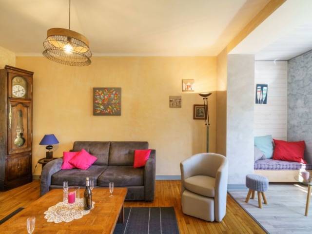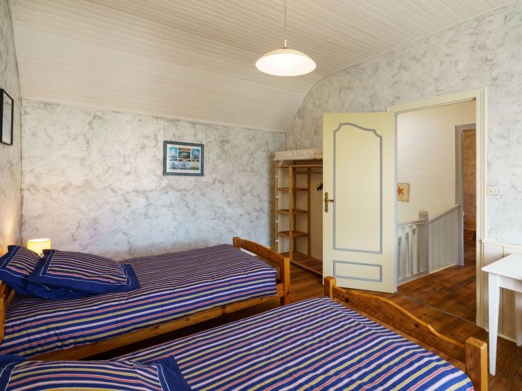 "Ty Martelod (SGU108)", casa 3 estancias 90 m2 en 2 plantas. Con mobiliario bonito: salón con TV satélite y canales internacionales. Cocina (horno, lavavajillas, 4 fuegos, tostadora, hervidor de agua eléctrico, microondas, congelador, cafetera eléctrica) con mesa de comedor. WC separado. Planta superior: 1 dorm. con 1 cama de matrimonio (140 cm, 190 cm de longitud). 1 dorm. con 2 camas (90 cm, 190 cm de longitud). Ducha. Calefacción eléctrica. Suelo de parquet. Terraza. Muebles de terraza, barbacoa (portátil), tumbonas (2), trastero. El alojamiento dispone de: lavadora, plancha, trona, cuna, secador de pelo. Internet (Wifi, extra). A tener en cuenta: casa para no fumadores. Detector de humo.