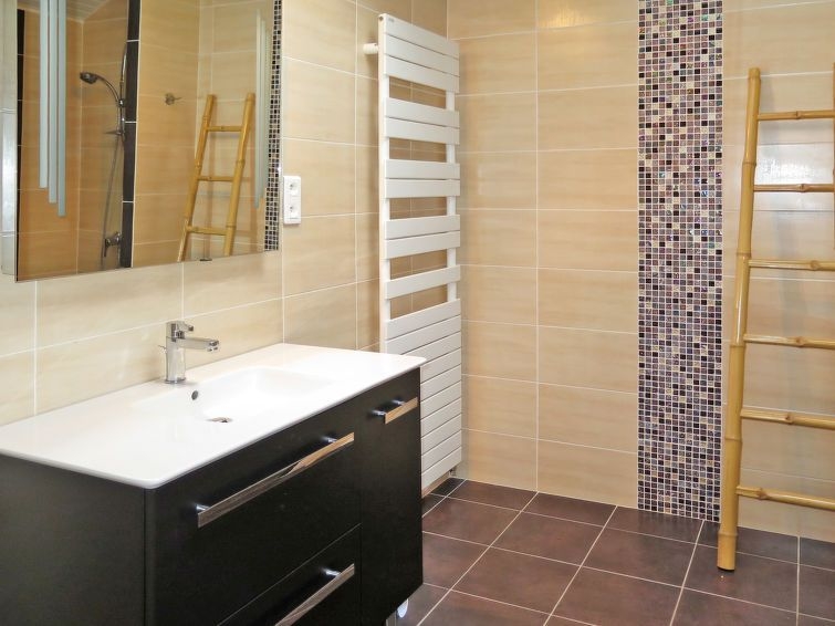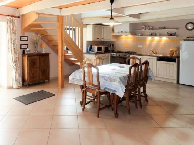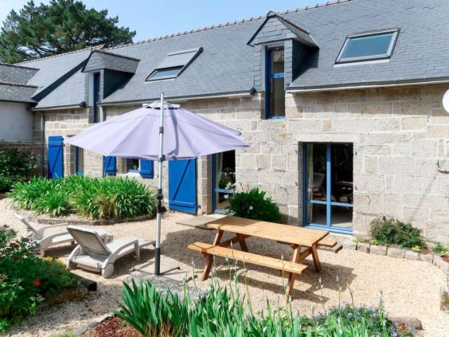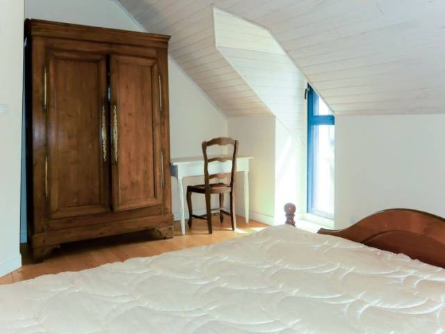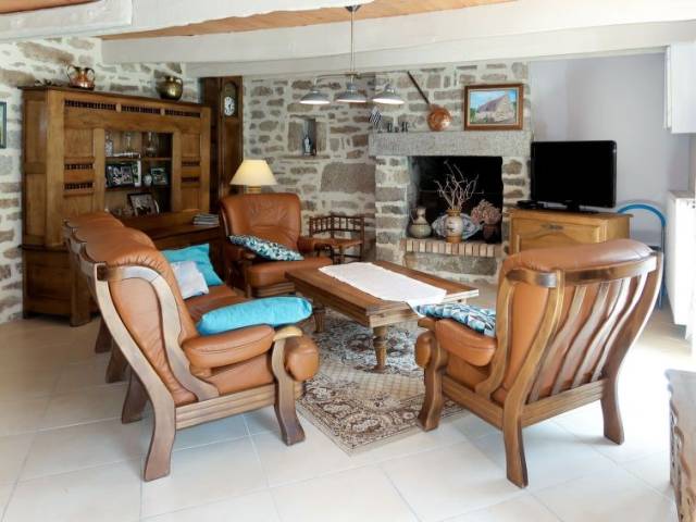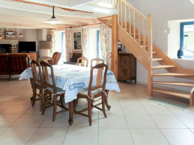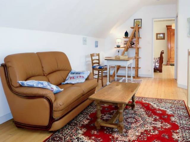 "Ty Coz (TGC113)", casa 4 estancias 105 m2 en 2 plantas. Luminoso, con mobiliario bonito: salón-comedor grande con chimenea (sólo con función decorativa), mesa de comedor, TV satélite y canales internacionales. Salida a la terraza. 1 dorm. con 2 camas (90 cm, 190 cm de longitud). Cocina abierta (horno, lavavajillas, 5 fuegos, tostadora, hervidor de agua eléctrico, microondas, congelador, cafetera eléctrica). Ducha, WC separado. Planta superior: 2 dorm., abuhardillados, cada habitación con 1 cama de matrimonio (140 cm, 190 cm de longitud). Ducha/WC. Calefacción eléctrica. Suelo de parquet. Terraza, orientación sur. Muebles de terraza, barbacoa (portátil), tumbonas (2), trastero. El alojamiento dispone de: lavadora, plancha. Internet (Wifi, gratis). A tener en cuenta: casa para no fumadores. Detector de humo.