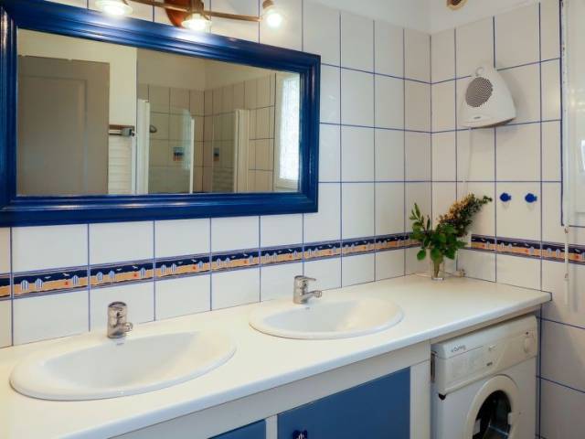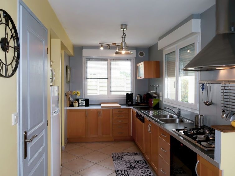 "de la Plage (PBA104)", casa 4 estancias 80 m2 en 2 plantas. Con mobiliario bonito y agradable: salón-comedor con chiminea nórdica, mesa de comedor y TV satélite (pantalla plana), equipo de música y DVD. Cocina abierta (horno, lavavajillas, 5 fuegos, tostadora, hervidor de agua eléctrico, microondas, congelador, cafetera eléctrica). Salida a la terraza-jardín. Ducha, WC separado, doble lavabo. Planta superior: 1 dorm., abuhardillado con 1 cama de matrimonio (140 cm, 190 cm de longitud). 2 dorm., abuhardillados, cada habitación con 2 camas (90 cm, 190 cm de longitud). Calefacción eléctrica. Muebles de terraza, barbacoa, tumbonas (2). El alojamiento dispone de: lavadora, plancha, trona, cuna. A tener en cuenta: casa para no fumadores. Permitido máximo 1 mascota / perro. Detector de humo.
