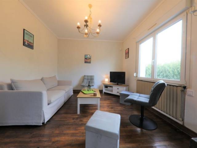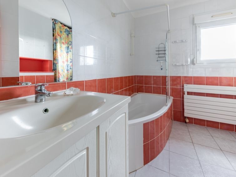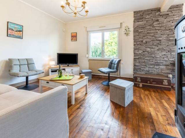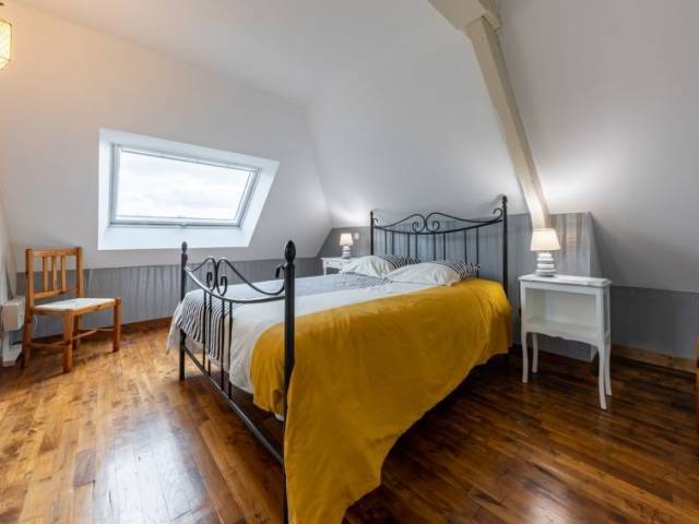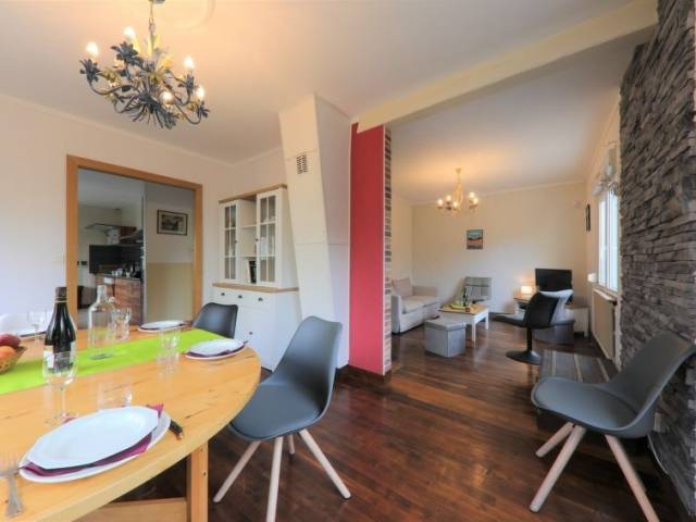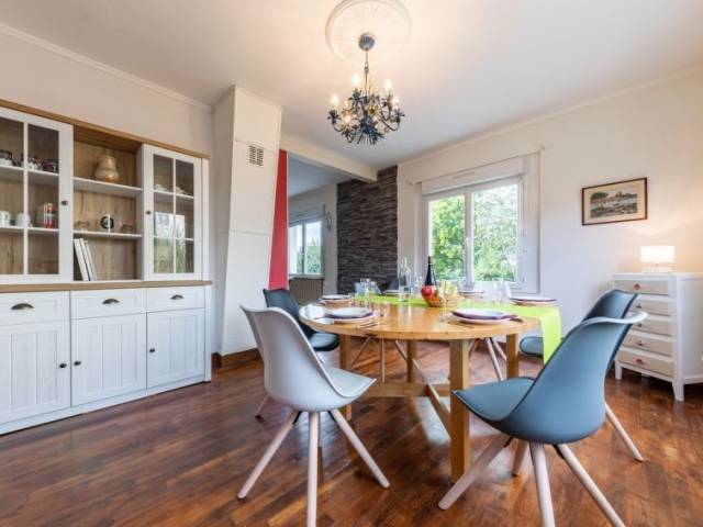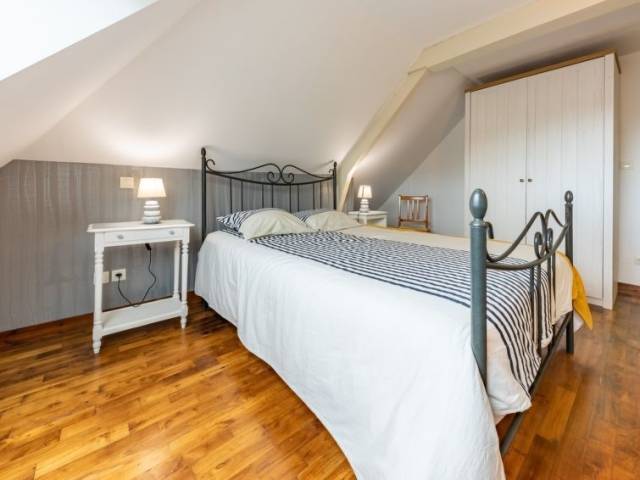 "Entre Golfe et Océan", casa 5 estancias 110 m2 en 2 plantas, en planta baja elevada. Con mobiliario bonito: entrada. Salón-comedor con estufa de lena. 1 dorm. con 1 cama de matrimonio (140 cm, 190 cm de longitud). Salida al balcón acristalado. Cocina (1 fogón, horno, lavavajillas, 3 fuegos, tostadora, hervidor de agua eléctrico, microondas, congelador, cafetera eléctrica). Salida al balcón acristalado. Baño, WC separado. Planta superior: 1 dorm., abuhardillado con 1 cama de matrimonio (160 cm, 200 cm de longitud). 1 dorm. con 1 cama de matrimonio (140 cm, 190 cm de longitud). 1 dorm., abuhardillado pequeño con 2 camas-nido (2 x 90 cm, 190 cm de longitud). Baño/WC. Calefacción gasóleo. Muebles de terraza, invernadero. El alojamiento dispone de: lavadora, cuna. Internet (Wifi, gratis). A tener en cuenta: apartamento para no fumadores. Detector de humo. La disponibilidad de las camas es flexible. Aunque haya más camas disponibles que la ocupación máxima, esta no se puede exceder.