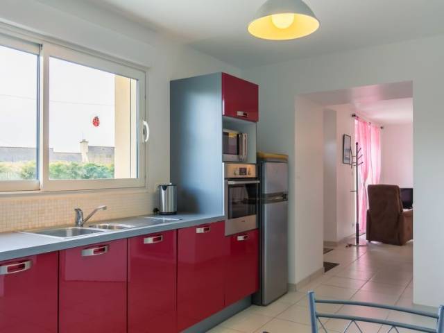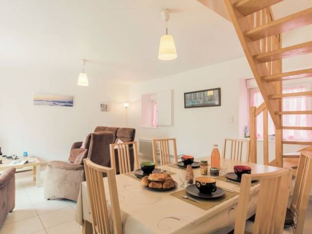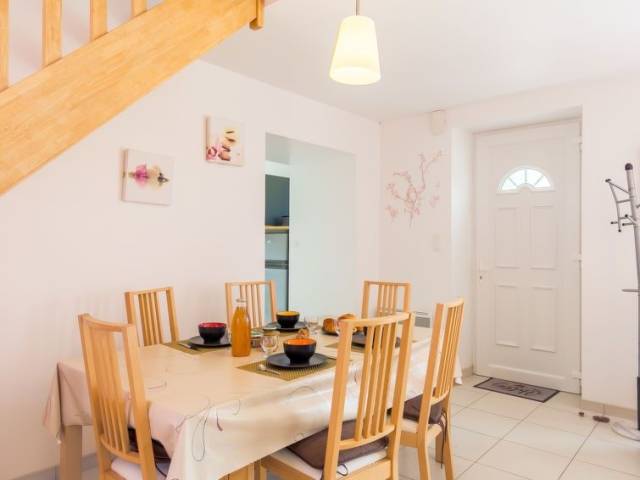 "Va Zi Bihan (GUI111)", casa 3 estancias 85 m2 en 2 plantas. Con mobiliario bonito y de buen gusto: salón-comedor con mesa de comedor y TV satélite. Salida al jardín. Cocina abierta (horno, lavavajillas, 3 Placas de inducción, tostadora, hervidor de agua eléctrico, microondas, congelador, cafetera eléctrica) con mesa de comedor. Ducha, WC separado. Planta superior: 1 dorm., abuhardillado con 2 camas. 1 dorm., abuhardillado con 1 cama de matrimonio (160 cm). Ducha/WC. Calefacción eléctrica. Suelo de parquet. Jardín, orientación sur y orientación oeste. Muebles de terraza, barbacoa (portátil), tumbonas (4). El alojamiento dispone de: lavadora, plancha, cuna. A tener en cuenta: casa para no fumadores. 1 mascota / perro. Detector de humo.