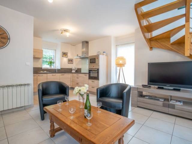 "Gîte des Perdrix (PZB100)", casa 4 estancias 80 m2 en 2 plantas. Con mobiliario bonito y agradable: salón-comedor con mesa de comedor, TV satélite, DVD y estufa de lena. Salida a la terraza. 1 dorm. con 1 cama de matrimonio (160 cm, 200 cm de longitud), ducha. Cocina abierta (horno, lavavajillas, 4 Placas de inducción, tostadora, hervidor de agua eléctrico, microondas, congelador, cafetera eléctrica, horno Raclette). WC separado. Planta superior: 1 dorm., abuhardillado con 1 cama de matrimonio (160 cm, 200 cm de longitud). 1 dorm., abuhardillado con 2 camas (90 cm, 190 cm de longitud). Baño/WC. Calefacción eléctrica. Terraza. Muebles de terraza. El alojamiento dispone de: lavadora, trona, cuna, secador de pelo. Internet (Wifi, gratis). A tener en cuenta: casa para no fumadores. Detector de humo.