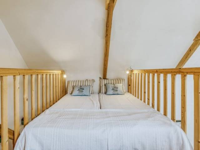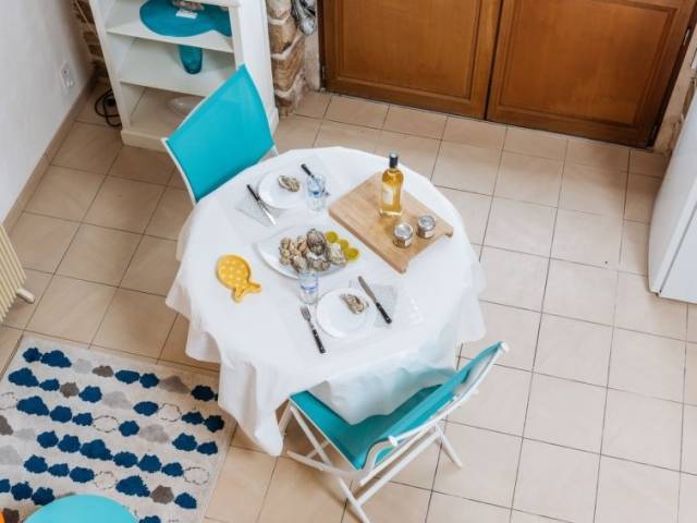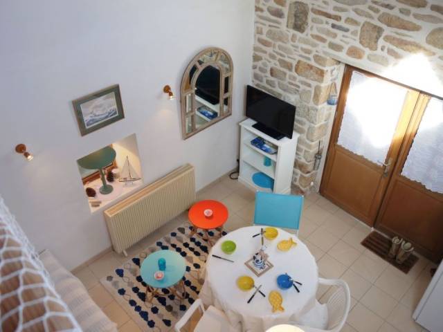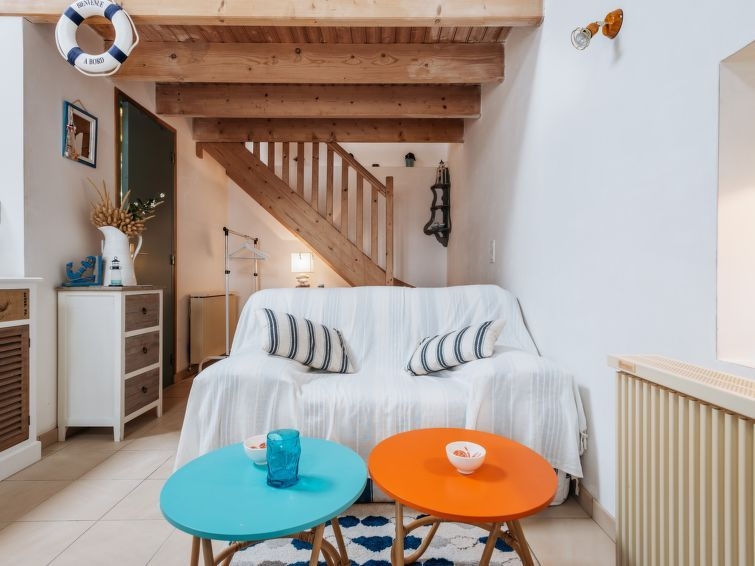 Estudio 25 m2 en 2 plantas. Con mobiliario bonito y agradable: salón-comedor con TV (pantalla plana). Pequeña cocina abierta (4 fogones, horno, microondas). Ducha/WC. Planta superior: altillo abuhardillado con 2 camas (80 cm, 190 cm de longitud), calefacción eléctrica. El alojamiento dispone de: lavadora, plancha. Internet (Wifi, gratis). Plaza de aparcamiento junto a la casa. A tener en cuenta: detector de humo.