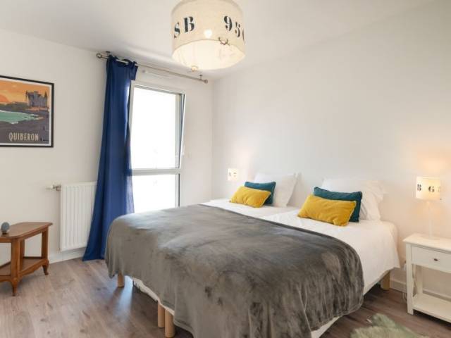 "Le Clos Moguer", apartamento de 2 estancias 45 m2 en el 1° piso. Salón-comedor con 1 sofá-cama doble (1 x 160 cm, 190 cm de longitud), TV (pantalla plana), radio, CD y DVD. Salida a la terraza. 1 dorm. con 2 camas (90 cm, 190 cm de longitud). Cocina (horno, lavavajillas, 3 Placas de inducción, tostadora, hervidor de agua eléctrico, cafetera eléctrica, Cápsulas de café (NESPRESSO) extra, microondas/grill). Ducha, WC separado. Calefacción de gas. Terraza grande 10 m2. Muebles de terraza. El alojamiento dispone de: lavadora, secadora. Internet (Wifi, gratis). Plaza de aparcamiento n. 21. A tener en cuenta: detector de humo. Oferta de un particular según el art. 155, IV del CGI.