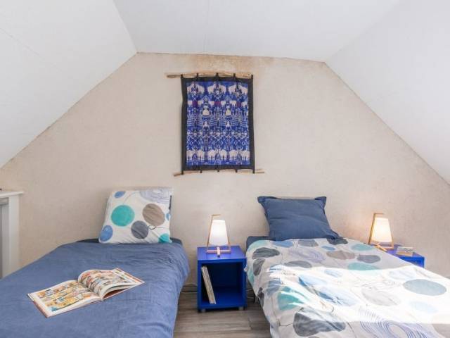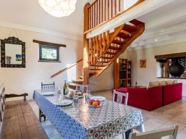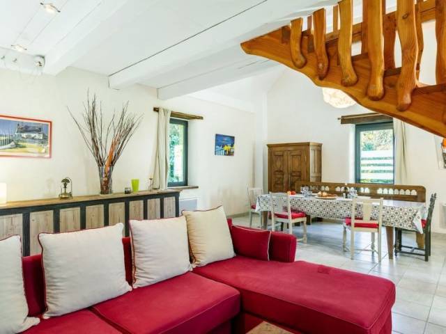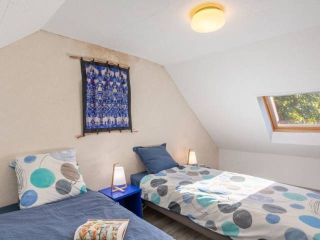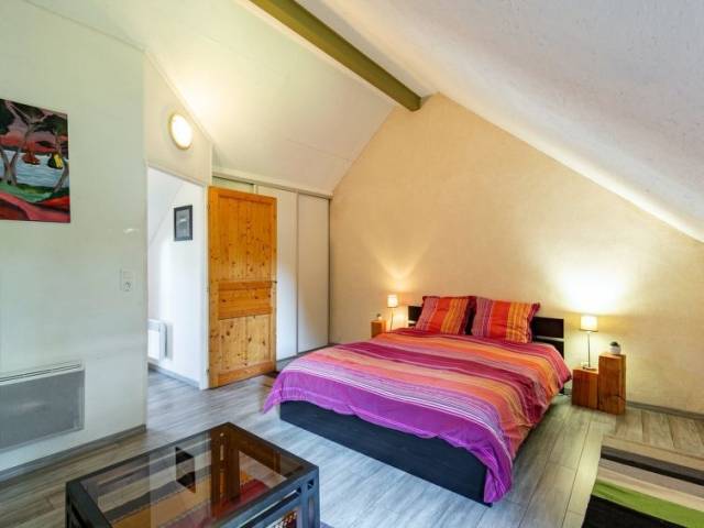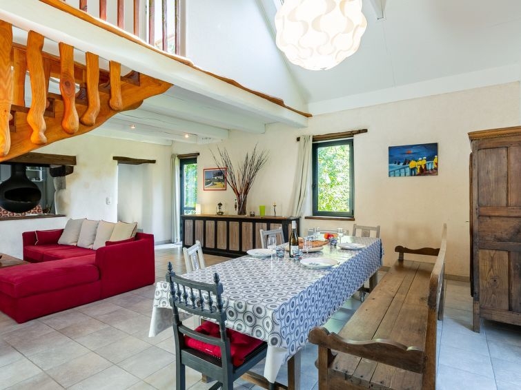 "Les Trois Baudets (ELI100)", casa 3 estancias 125 m2 en 2 plantas. Con mobiliario bonito y agradable: salón-comedor con chimenea, mesa de comedor, TV y CD. Salida al jardín, a la terraza. Cocina abierta (horno, lavavajillas, 4 placas de vitrocerámica, tostadora, hervidor de agua eléctrico, microondas, cafetera eléctrica) con pequena mesa de comedor. Ducha, WC separado. Calefacción eléctrica. Planta superior: 1 dorm., abuhardillado con 2 camas (90 cm, 200 cm de longitud). 1 dorm., abuhardillado con 1 cama de matrimonio (160 cm). Suelo de parquet. Terraza, orientación sur, jardín. Muebles de terraza, barbacoa (portátil). El alojamiento dispone de: lavadora, plancha, trona, cuna. Internet (Wifi, gratis). A tener en cuenta: casa para no fumadores. Detector de humo, extintores.
