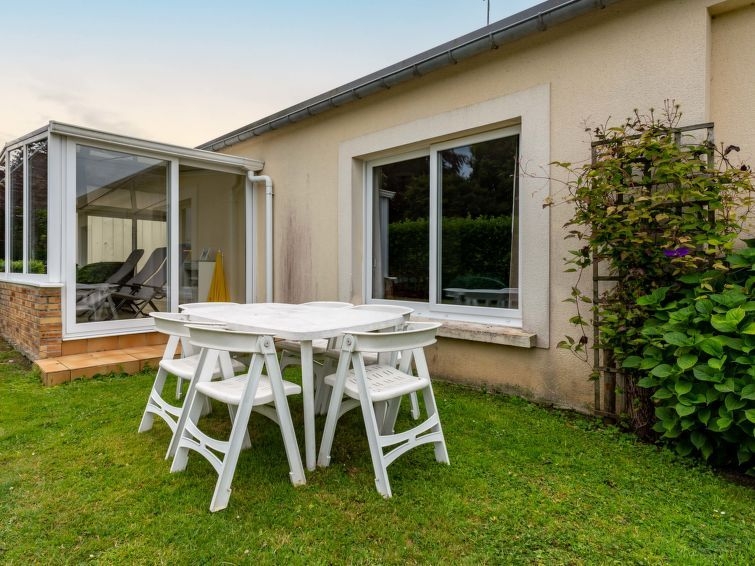 "Le Saint Vigor (BAX400)", casa 4 estancias 150 m2. Con mobiliario funcional: salón-comedor con mesa de comedor, TV satélite, radio y estufa de lena. Salón-comedor con invernadero con mesa de comedor y TV satélite. Salida a la terraza. 2 dorm., cada habitación con 1 cama de matrimonio. 1 dorm. con 2 camas. Cocina (horno, lavavajillas, 4 placas de vitrocerámica, tostadora, hervidor de agua eléctrico, microondas, congelador, cafetera eléctrica) con pequena mesa de comedor. Ducha, WC separado, doble lavabo. Calefacción eléctrica, calefacción gasóleo. Suelo de parquet. Terraza. Muebles de terraza, barbacoa (portátil), tumbonas (2). El alojamiento dispone de: lavadora, plancha, trona, cuna. Internet (Wifi, gratis). A tener en cuenta: casa para no fumadores. Permitido máximo 2 mascotas / perros. Detector de humo.