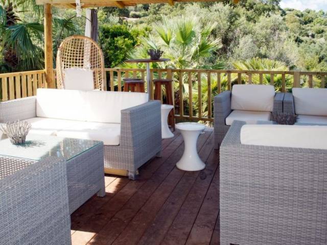 "Fium del Cavu (PIN192)", bungalow 3 estancias 50 m2. Con mobiliario funcional: salón-dormitorio con mesa de comedor y ventilador. 2 dorm., cada habitación con 1 cama (90 cm, 190 cm de longitud), 1 cama de matrimonio (140 cm, 190 cm de longitud). Rincón-cocina (4 fuegos, tostadora, microondas, congelador, cafetera eléctrica) con aire acondicionado. Ducha, WC separado. Calefacción eléctrica, aire acondicionado. Terraza. Muebles de terraza, barbacoa, tumbonas (2). Vista bonita al jardín, al paisaje y al mar. Plaza de aparcamiento (1 coche). A tener en cuenta: apartamento para no fumadores. Detector de humo. Oferta de un propietario comercial según el art. 155, IV, CGI