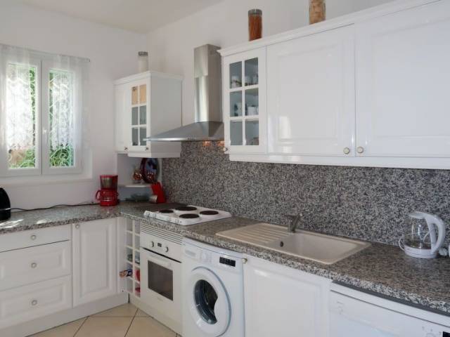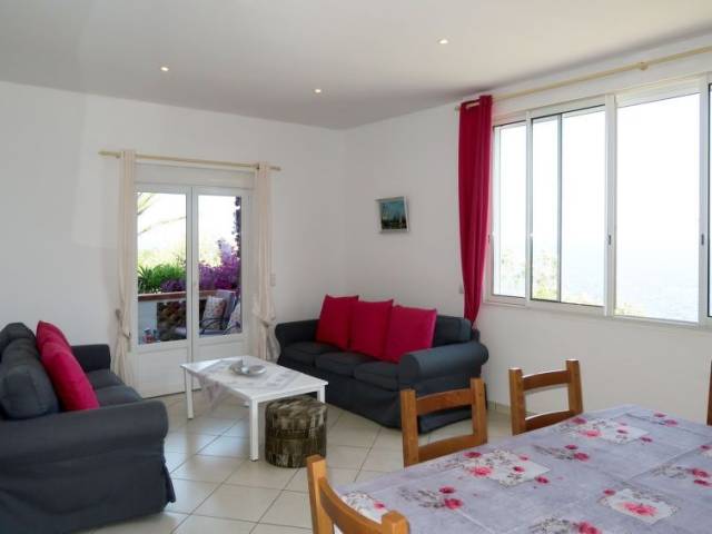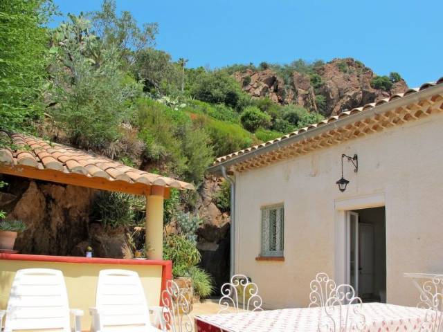 Miramar a 5 km de Théoule-sur-mer: Casa unifamiliar "La Rocade", bonita, agradable. En el barrio de Miramar, a 5 km del centro de Théoule-sur-Mer, a 17 km del centro de Cannes, lugar soleado, elevado en una pendiente, en un barrio residencial, a 1.5 km del mar, en una calle sin salida. Privado: jardín en diferentes niveles bonito 1'500 m2 (vallado) con plantas y árboles. Acceso por escaleras hasta la casa. Aparcamiento junto a la casa, garaje individual (extra) junto a la casa. Tienda 5 km, supermercado 8 km, estación de tren "Cannes" 17 km, playa de arena 1.5 km. Campo de golf 10 km. "La Rocade (TEU110)", casa 4 estancias 80 m2. Luminoso, con mobiliario funcional y bonito: salón-comedor con chimenea (sólo con función decorativa), mesa de comedor y TV satélite. Salida a la terraza. 1 dorm. con 1 cama de matrimonio. Salida al jardín. 2 dorm., cada habitación con 2 camas y ducha/WC. Cocina abierta (4 fogones, horno, lavavajillas, tostadora, hervidor de agua eléctrico, microondas, congelador, cafetera eléctrica) con pequena mesa de comedor. Salida a la terraza. Ducha, WC separado. Calefacción eléctrica. Terraza grande. Muebles de terraza, barbacoa. Vista espléndida al mar. El alojamiento dispone de: lavadora, trona, cuna. Internet (Wifi, gratis). A tener en cuenta: apartamento para no fumadores. Permitido máximo 1 mascota / perro. Detector de humo, extintores. Las dos habitaciones dobles sólo son accesibles desde el exterior a través de la terraza (no hay conexión interna). Si el número de personas que ocupan la casa vacacional fuera inferior al máximo posible, no todos los dormitorios estarán disponibles.
