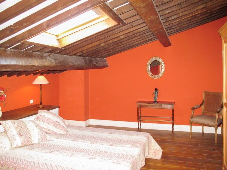 "Terres Ste Hilaire - Ciboulette (OLL106)", apartamento de 5 estancias 145 m2 en 2 plantas en el 1° piso. Con mobiliario de buen gusto: planta superior: (escalera exterior) salón 36 m2, grande con chimenea (sólo con función decorativa), mesa de comedor. 1 dorm. con 1 cama de matrimonio (160 cm), ducha/WC. 2 dorm., cada habitación con 2 camas (80 cm). Cocina abierta (4 fogones, horno, lavavajillas, tostadora, microondas, congelador, cafetera eléctrica). Baño, WC separado. Planta superior 2: (escalera de caracol) 1 dorm., ventana al salón con 3 camas (80 cm). Ducha/WC. Calefacción. Suelo de madera. Balcón pequeño. Vista bonita al paisaje. El alojamiento dispone de: Internet (Wifi, gratis). A tener en cuenta: detector de humo.