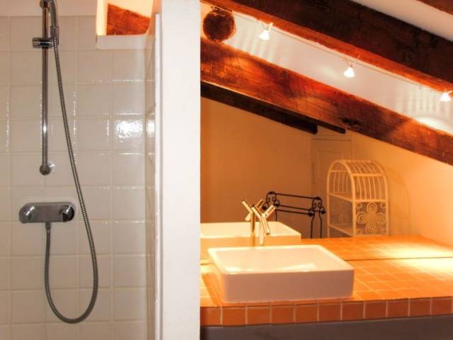 Wi-fi sólo para 1 dispositivo final por unidad de alojamiento. Casa de campo en viñedo "Les Terres de Saint Hilaire", bonita, rústica del siglo 17°, reformada, rodead árboles, campos y viñedos. 10 apartamentos en la residencia. A 4 km del centro de Ollières, a 9 km del centro de Saint Maximin, en las afueras de la localidad, a 39 km del centro de Aix-en-Provence, lugar aislado, soleado, en el campo. Comunitario: terreno 150 ha con plantas y árboles, jardín natural, pradera, piscina (14 x 7 m, Disponible por temporada: 01.May. - 30.Sep.). WC en zona de piscina, tenis de mesa, petanca, terraza, muebles de jardín, barbacoa. En el complejo: lavadora, secadora (uso comunitario, extra). Aparcamiento en el mismo terreno. Supermercado 9 km, restaurante 5 km. Centro ecuestre 500 m. Venta local de productos de granja. A tener en cuenta: La foto corresponde a una de las viviendas. "Terres Ste Hilaire Farigoulette (OLL103)", apartamento de 5 estancias 140 m2 en 2 plantas en el 1° piso. Con mobiliario de buen gusto: planta superior: entrada grande. Salón con chimenea, mesa de comedor y TV satélite. 1 dorm. con 2 camas (80 cm), ducha. 1 dorm. con 2 camas. Cocina abierta (4 fogones, horno, lavavajillas, tostadora, microondas, congelador, cafetera eléctrica). WC separado. Planta superior 2: 2 dorm., abuhardillados con tragaluz, cada habitación con 2 camas (80 cm). Ducha, WC separado. Calefacción. Suelo de madera. Vista bonita al paisaje. El alojamiento dispone de: Internet (Wifi, gratis). A tener en cuenta: detector de humo.