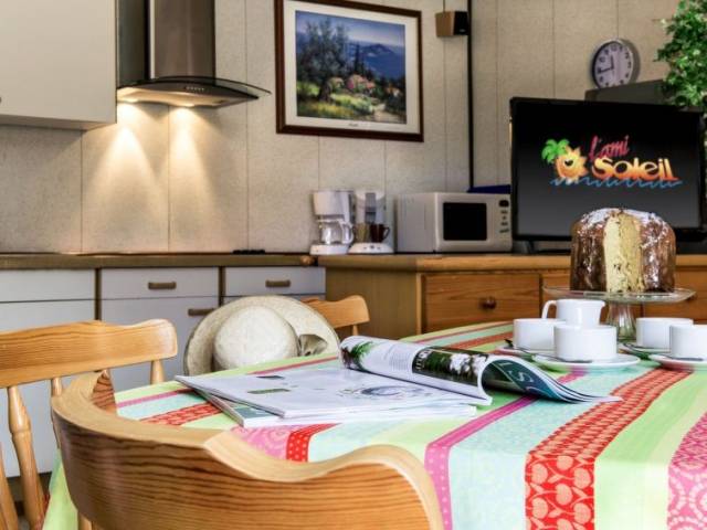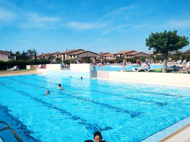 Resort "Tamaris/Portes du Soleil", idóneo para niños. 800 apartamentos en la residencia. A 500 m del centro de Portiragnes-Plage, a 4 km del centro de Portiragnes-Village, a 500 m del mar, a 500 m de la playa. Comunitario: terreno 18 ha (vallado) con plantas y árboles, 2 piscinas (570 m2, Disponible por temporada: 01.Abr. - 01.Oct. y 01.Jun. - 30.Sep.). WC en zona de piscina, piscina para niños, tobogán, ducha exterior, piscina de hidromasaje, tenis de mesa, básquet, petanca, voleibol, parque infantil. En el complejo: recepción, bar, bar, lavadora (extra), secadora (uso comunitario, extra). Servicio a domicilio de panecillos. Aparcamiento. Tienda 500 m, supermercado 5 km, playa de arena "Portiragnes-Plage" 500 m. Atracciones en los alrededores: Portiragnes village 4 km, Canal du Midi 800 m. A tener en cuenta: animación en la temporada. Guardería infantil en la temporada. La foto corresponde a una de las viviendas. "Tamaris/Portes du Soleil (PTI121)", casa adosada 3 estancias 53 m2 en 2 plantas. Con mobiliario funcional y con mucha madera: salón-dormitorio con 1 sofá-cama doble (140 cm, 190 cm de longitud), mesa de comedor y TV (pantalla plana), calefacción eléctrica y aire acondicionado. Rincón-cocina (4 fogones, lavavajillas, hervidor de agua eléctrico, microondas, congelador, cafetera eléctrica, Cápsulas de café (Senséo)). WC separado, baño o ducha. Planta superior: (escalera empinada) 1 dorm., abuhardillado con 2 posibilidades para dormir (2 x 80 cm, 190 cm de longitud). 1 dorm., abuhardillado con 1 cama de matrimonio (140 cm, 190 cm de longitud). Terraza 12 m2. Muebles de terraza, barbacoa, tumbonas (2). El alojamiento dispone de: Internet (Wifi, gratis). Plaza de aparcamiento junto a la casa. A tener en cuenta: permitido máximo 2 mascotas / perros. Detector de humo.