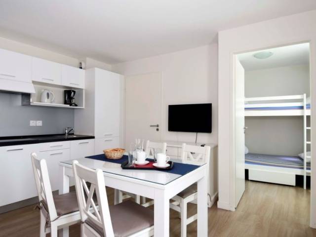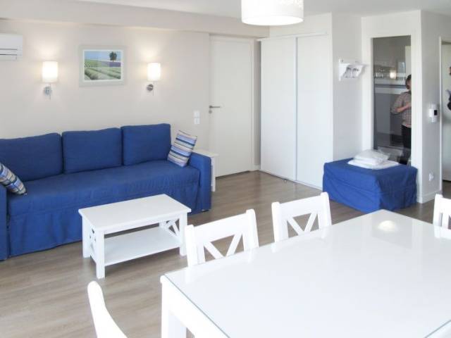 Residencia "Les Dunes du Soleil", de 4 plantas. 75 apartamentos en la residencia. En el barrio de Point Zéro, a 400 m del centro de La Grande Motte, a 27 km del centro de Montpellier, a 50 m del mar. Comunitario: piscina climatizada (12 x 4 m, Disponible por temporada: 04.Abr. - 26.Sep.). En el inmueble: recepción, ascensor, lavadora, secadora (uso comunitario, extra). Aparcamiento (cubierto, número limitado, extra), posibilidad de aparcamiento en la calle. Tienda, restaurante 400 m, playa de arena 50 m. A tener en cuenta: La foto corresponde a una de las viviendas. Los alojamientos pueden diferir en la superficie habitable, la distribución de las estancias, el equipamiento y el mobiliario. "Les Dunes du Soleil (LGM101)", apartamento de 2 estancias 40 m2, en planta superior. Salón-dormitorio con 1 sofá-cama doble, 1 posibilidad para dormir, mesa de comedor, TV y aire acondicionado. 1 dorm. con 1 cama de matrimonio. Pequeña cocina abierta (lavavajillas, 4 placas de vitrocerámica, hervidor de agua eléctrico, microondas, congelador, cafetera eléctrica). Ducha/WC. Calefacción eléctrica. Balcón. Muebles de balcón. El alojamiento dispone de: trona, cuna. Internet (Wifi, gratis). A tener en cuenta: apartamento para no fumadores. Permitido máximo 2 mascotas / perros. Detector de humo, extintores. El alojamiento es una casa tipo ejemplo o un apartamento tipo ejemplo. Debido al coronavirus (COVID-19) este alojamiento toma medidas para garantizar la seguridad de los huéspedes y el personal. Por consiguiente, es posible que algunos servicios e instalaciones sólo estén disponibles de manera limitada o que no estén disponibles en absoluto.