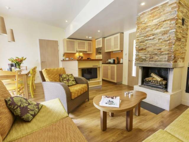 "Cottage Premium", casa adosada 5 estancias 92 m2. Luminoso, con mobiliario muy confortable y agradable: salón-comedor con chimenea, mesa de comedor y TV (pantalla plana). Salida a la terraza. 2 dorm., cada habitación con 1 cama doble (180 cm, 210 cm de longitud). 2 dorm., cada habitación con 2 camas (90 cm, 210 cm de longitud). Cocina abierta (lavavajillas, 4 placas de vitrocerámica, tostadora, hervidor de agua eléctrico, cafetera eléctrica, microondas/grill). Baño, 2 duchas, WC separado, bañera de hidromasaje. Suelo de madera. Terraza. Muebles de terraza. El alojamiento dispone de: caja fuerte, trona, cuna. Internet (Wifi, gratis). Plaza de aparcamiento (2 Coches). A tener en cuenta: apartamento para no fumadores. El alojamiento es una casa tipo ejemplo o un apartamento tipo ejemplo.