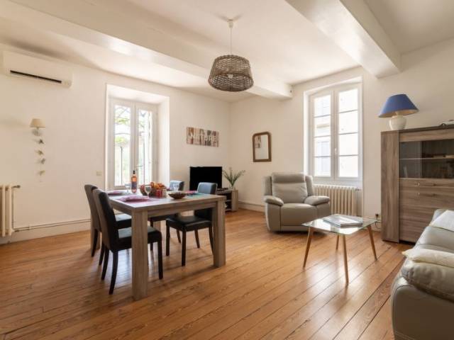 "La Terrasse des Vignes (NYS180)", apartamento de 3 estancias 85 m2 en el 1° piso. Reformado en 2016, con mobiliario bonito y de buen gusto: salón-comedor con mesa de comedor, TV satélite y aire acondicionado. Salida al balcón. 1 dorm. con 1 cama de matrimonio. Salida al balcón. 1 dorm. con 2 camas. Salida al balcón. Pequeña cocina (horno, lavavajillas, 4 placas de vitrocerámica, tostadora, hervidor de agua eléctrico, microondas, congelador, cafetera eléctrica). Ducha, WC separado. Calefacción de gas. Suelo de parquet. Balcón 35 m2. Muebles de balcón, barbacoa eléctica (portátil). El alojamiento dispone de: lavadora. Internet (Wifi, gratis). Plaza de aparcamiento (vallada) a 300 m.