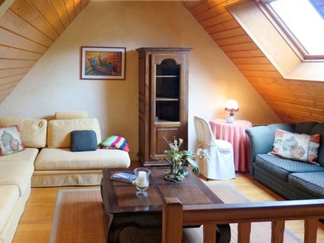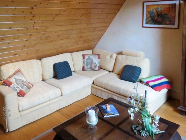 "Tranche (TRS100)", casa 3 estancias 70 m2 en 2 plantas. Con mobiliario agradable y con mucha madera: comedor abierto con invernadero con chimenea (sólo con función decorativa), mesa de comedor. 1 dorm. con 1 cama de matrimonio (140 cm, 190 cm de longitud). Cocina abierta (horno, lavavajillas, Estufa de gas, 4 fuegos, tostadora, hervidor de agua eléctrico, microondas, congelador, cafetera eléctrica) con mesa de comedor. Salida a la terraza. Ducha, WC separado, doble lavabo. Planta superior: sala de estar abuhardillada con TV cable (pantalla plana). 1 dorm., abuhardillado con 1 cama de matrimonio (140 cm, 190 cm de longitud). Calefacción eléctrica. Terraza 30 m2. Muebles de terraza. El alojamiento dispone de: lavadora, secadora, plancha, trona, cuna. Internet (Wifi, gratis). A tener en cuenta: casa para no fumadores. Detector de humo.