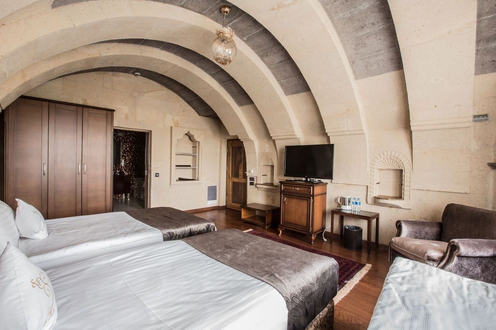 El resort se encuentra entre las cuevas de Uchistar. El hotel ofrece una estancia lujosa en medio de esta excepcional zona, con imponentes vistas panorámicas al mágico paisaje lunar. Ofrece inolvidables experiencias gastronómicas, habitaciones íntimas y acogedoras y un exclusivo spa privado. Los centros de congresos y negocios del establecimiento permiten a los huéspedes combinar trabajo y placer en este maravilloso emplazamiento situado entre cuevas.