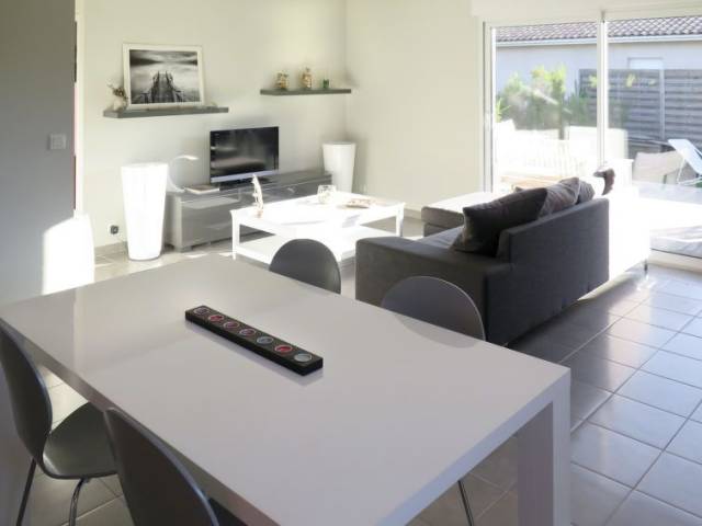 "Les Pins de l'Océan (MVT195)", casa 3 estancias 60 m2. Vivienda adecuada para 2 adultos + 2 niños. Con mobiliario bonito y moderno: salón-comedor con ventanal con mesa de comedor y TV satélite (pantalla plana). Salida a la terraza. 2 dorm., cada habitación con 1 cama de matrimonio (140 cm, 190 cm de longitud). Cocina abierta (horno, lavavajillas, 4 fuegos, tostadora, hervidor de agua eléctrico, microondas, congelador, cafetera eléctrica). Ducha, WC separado. Calefacción eléctrica. Terraza. Muebles de terraza, barbacoa (portátil), tumbonas (2). El alojamiento dispone de: lavadora, plancha, trona, cuna (extra). Internet (Wifi, gratis). A tener en cuenta: casa para no fumadores. Detector de humo.