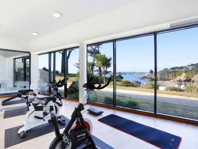 Resort "Iroise Armorique", bonito de 3 plantas. 77 casas en la residencia. 20 apartamentos en la residencia. En el aldea Portez, a 4 km del centro de Locmaria-Plouzané, a 6 km del centro de Plouzané, a 16 km del centro de Brest, a orillas del mar, en primera linea de playa, acceso directo a la playa. Comunitario: terreno 4 ha con césped y plantas, piscina climatizada, vallada (15 x 8 m, Disponible por temporada: 01.Ene. - 31.Dic.) con escalera interior y sistema de cobertura. Terraza. En el complejo: recepción, acceso a internet, Wifi, sauna, gimnasio, lavadora, secadora (uso comunitario, extra). Aparcamiento en el mismo terreno. Tienda 1 km, supermercado 4 km, restaurante 300 m, estación de tren "Brest" 17 km, playa de arena "Plage de Porsmilin" 50 m. Escuela de surf 50 m. A tener en cuenta: complejo de vacaciones sin coches. La foto corresponde a una de las viviendas. Los alojamientos pueden diferir en la superficie habitable, la distribución de las estancias, el equipamiento y el mobiliario. "Iroise Amorique (LMP402)", casa adosada 4 estancias 65 m2. Luminoso, con mobiliario funcional: salón-dormitorio con 1 sofá-cama, 1 cama-nido, mesa de comedor y alquiler de TV opcional. Salida a la terraza. 1 dorm. con 1 cama de matrimonio (140 cm, 190 cm de longitud). Rincón-cocina (lavavajillas, 4 placas de vitrocerámica, tostadora, microondas, congelador, cafetera eléctrica). WC separado, baño o ducha. Planta superior: 2 dorm., abuhardillados, cada habitación con 2 posibilidades para dormir. Baño/WC. Calefacción eléctrica. Terraza. Muebles de terraza. El alojamiento dispone de: Internet (Wifi, extra). A tener en cuenta: apartamento para no fumadores. Permitido máximo 1 mascota / perro. Detector de humo, extintores. El alojamiento es una casa tipo ejemplo o un apartamento tipo ejemplo. Este tipo de alojamiento también puede crearse en un nivel.