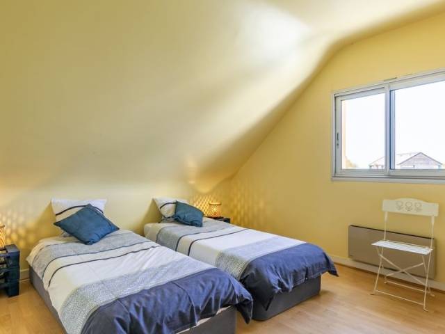 "Cremiou Beach (KER215)", casa 5 estancias 130 m2 en 2 plantas. Con mobiliario bonito y agradable: salón-comedor con mesa de comedor y TV satélite. Salida al jardín, a la terraza. Cocina abierta (horno pequeño, lavavajillas, 4 placas de vitrocerámica, tostadora, microondas, congelador, cafetera eléctrica). Ducha, WC separado. Planta superior: 3 dorm., abuhardillados, cada habitación con 1 cama de matrimonio (140 cm, 190 cm de longitud). 1 dorm., abuhardillado con 1 cama doble (180 cm, 190 cm de longitud). Baño/WC. Calefacción eléctrica. Suelo de parquet. Terraza, orientación suroeste. Muebles de terraza, barbacoa (portátil), tumbonas (2). El alojamiento dispone de: lavadora, plancha. Internet (Wifi, gratis). A tener en cuenta: casa para no fumadores. Detector de humo. Si el número de personas que ocupan la casa vacacional fuera inferior al máximo posible, no todos los dormitorios estarán disponibles.