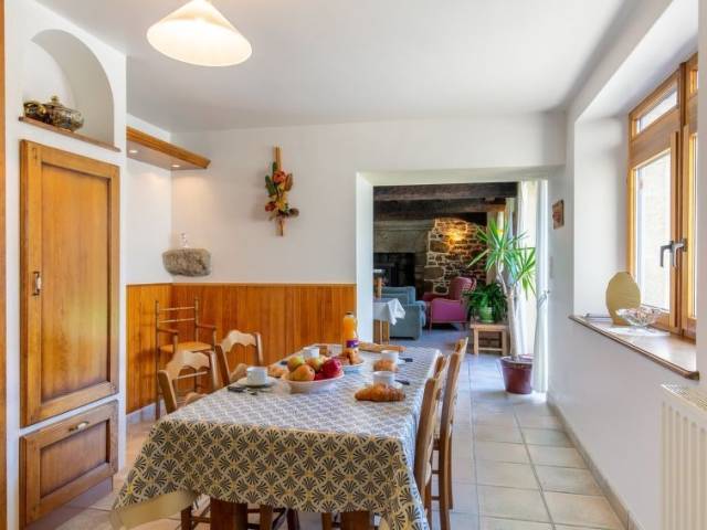 "Maner Penfrat (KER218)", casa 4 estancias 120 m2 en 2 plantas. Con mobiliario rústico y de buen gusto: salón-comedor con chimenea, mesa de comedor y TV satélite. Salida a la terraza. Cocina abierta (1 fogón, horno, lavavajillas, 3 fuegos, tostadora, hervidor de agua eléctrico, microondas, cafetera eléctrica) con pequena mesa de comedor. Ducha, WC separado. Planta superior: (escalera de caracol) 3 dorm., cada habitación con 1 cama de matrimonio (140 cm, 190 cm de longitud). Baño, WC separado. Calefacción gasóleo. Suelo de madera. Terraza. Muebles de terraza, barbacoa (portátil), tumbonas (2). El alojamiento dispone de: lavadora, trona, cuna. Internet (Wifi, gratis). A tener en cuenta: casa para no fumadores. Detector de humo.