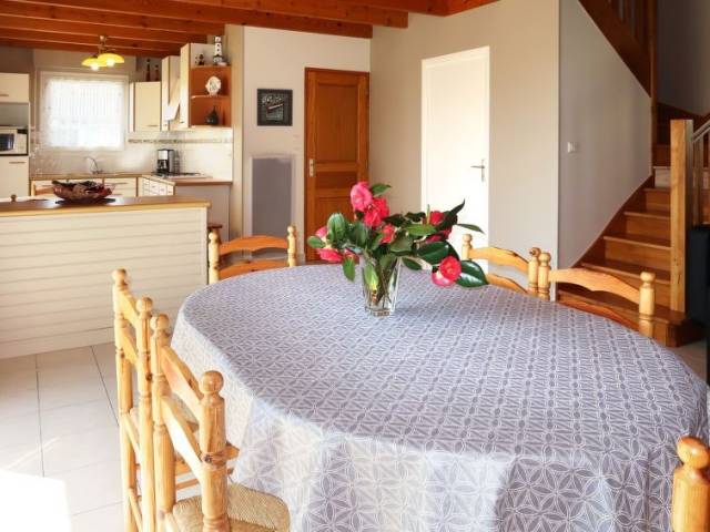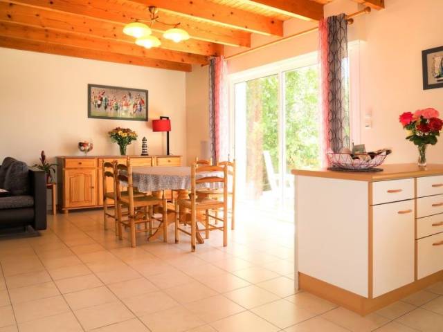 "Stereden Vor (PMN103)", casa 4 estancias 90 m2 en 2 plantas. Con mobiliario de buen gusto y con mucha madera: salón-comedor con mesa de comedor, TV satélite y pantalla plana. Salida a la terraza. Cocina abierta (1 fogón, lavavajillas, 3 fuegos, tostadora, hervidor de agua eléctrico, congelador, cafetera eléctrica, microondas/grill) con pequena mesa de comedor. Salida a la terraza. Ducha, WC separado. Planta superior: 1 dorm. con 1 cama de matrimonio (140 cm, 190 cm de longitud). 1 dorm. con 2 camas (90 cm, 190 cm de longitud). 1 dorm., abuhardillado con 1 cama de matrimonio (140 cm, 190 cm de longitud). WC separado. Calefacción eléctrica. Suelo de parquet. Terraza 30 m2, orientación sur. Muebles de terraza, barbacoa (portátil), tumbonas (6), trastero. El alojamiento dispone de: lavadora, plancha, trona, cuna. A tener en cuenta: casa para no fumadores. Permitido máximo 1 mascota / perro. Detector de humo. Si el número de personas que ocupan la casa vacacional fuera inferior al máximo posible, no todos los dormitorios estarán disponibles.