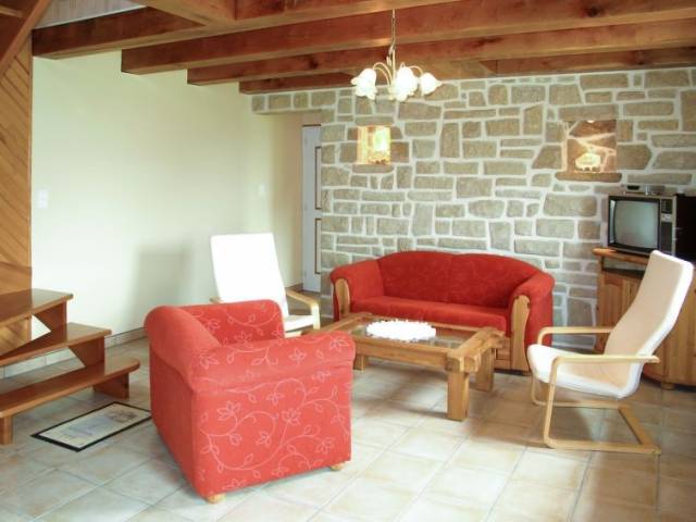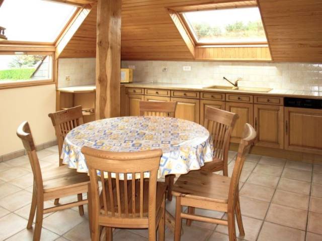 "Milin-Avel (TGM102)", casa 4 estancias 80 m2 en 2 plantas. Con mobiliario funcional y con mucha madera: salón-comedor con mesa de comedor, TV satélite y canales internacionales. Salida a la terraza. 1 dorm. con 1 cama de matrimonio (180 cm, 190 cm de longitud). Cocina abierta (horno, lavavajillas, Estufa de gas, 4 fuegos, tostadora, hervidor de agua eléctrico, microondas, congelador, cafetera eléctrica). Ducha, WC separado. Planta superior: 2 dorm., abuhardillados, cada habitación con 2 camas (90 cm, 190 cm de longitud). WC separado. Calefacción eléctrica. Terraza. Muebles de terraza, barbacoa (portátil), tumbonas (4). Vista al mar. El alojamiento dispone de: lavadora, secadora, trona, cuna hasta 2 años. Internet (Wifi, gratis). A tener en cuenta: casa para no fumadores. Detector de humo. Si el número de personas que ocupan la casa vacacional fuera inferior al máximo posible, no todos los dormitorios estarán disponibles.