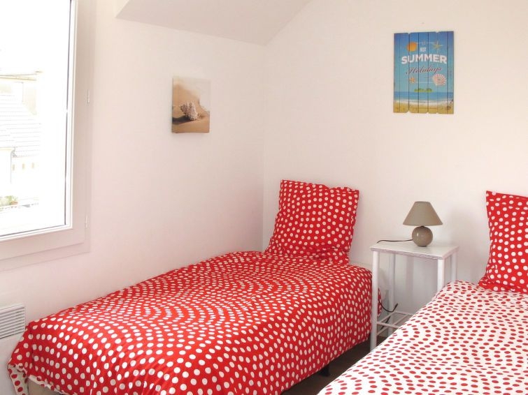 Casa adosada "Oscar". A 600 m del centro de Hauteville-sur-Mer, a 10 km del centro de Coutances, en un barrio residencial, a 350 m del mar, en una calle sin salida. Privado: terreno en estado natural 200 m2, aparcamiento en el mismo terreno, posibilidad de aparcamiento en la calle. Tienda 600 m, supermercado 2.5 km, playa de arena 350 m.