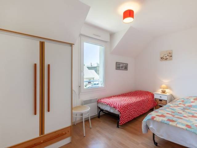 "Oscar (HSM402)", casa adosada 4 estancias 70 m2 en 2 plantas. Luminoso, con mobiliario funcional y agradable: salón-comedor con mesa de comedor, TV y radio. Salida a la terraza. Cocina abierta (horno, lavavajillas, 4 placas de vitrocerámica, tostadora, hervidor de agua eléctrico, microondas, congelador, cafetera eléctrica). WC separado. Planta superior: 2 dorm., abuhardillados, cada habitación con 1 cama de matrimonio. 1 dorm. con 2 camas. Ducha. Calefacción eléctrica. Suelo de parquet. Terraza. Muebles de terraza, barbacoa eléctica, trastero. El alojamiento dispone de: lavadora, plancha, trona. Internet (Wifi, gratis). A tener en cuenta: casa para no fumadores. Detector de humo.