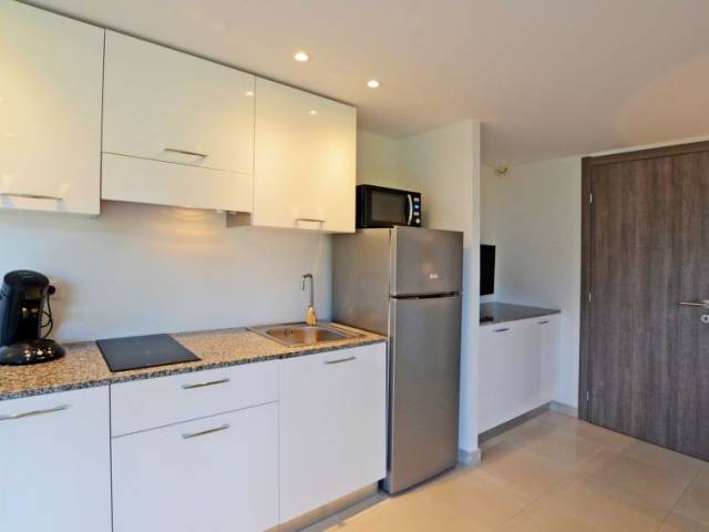 "MB6 sans vue mer (MNI102)", apartamento de 3 estancias 40 m2. Luminoso, reformado en 2017, con mobiliario funcional: salón-dormitorio con 1 sofá-cama doble, mesa de comedor y TV satélite. 1 dorm. con 1 cama de matrimonio. 1 dorm. con 2 camas. Rincón-cocina (2 placas de vitrocerámica, microondas, congelador, cafetera eléctrica). Ducha, WC separado. Calefacción eléctrica, aire acondicionado. Balcón o terraza cubierta. Muebles de terraza, muebles de balcón. A tener en cuenta: adecuado para familias. Apartamento para no fumadores. Permitido máximo 1 mascota / perro. Oferta de un propietario comercial según el art. 155, IV, CGI