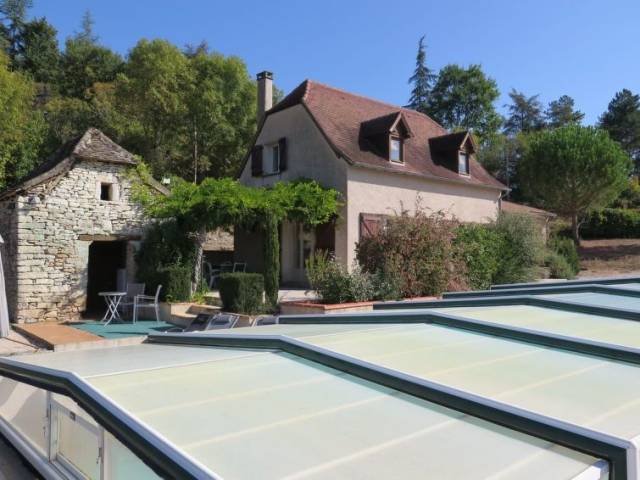 Casa unifamiliar "La Combelle", bonita, rodeada de prados y campos. A 1 km del centro de Cajarc, a 27 km del centro de Figeac, a 30 km del centro de Villefrance de Rouergue, en una pendiente, a 2.2 km de un lago. Privado: terreno en estado natural 1 ha con árboles, piscina (8 x 4 m, 130 cm de profundidad, Disponible por temporada: 01.Abr. - 30.Sep.) con sistema de cobertura. WC en zona de piscina, ducha exterior, casita de piscina con nevera y cocina, porche, muebles de jardín, barbacoa, aparcamiento (para 2 coches) junto a la casa en el mismo terreno. Supermercado 1 km, lago "Cajarc" 2 km. Posibilidades de pesca 2 km.