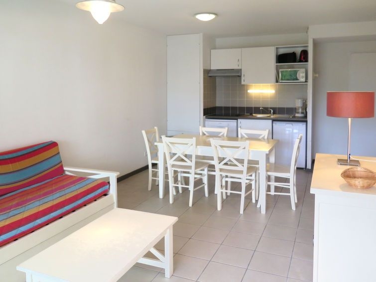 "Les Terrasses de l'Océan (MLP252)", apartamento de 3 estancias 45 m2. Luminoso, con mobiliario funcional: salón-dormitorio con 1 sofá-cama, 1 cama-nido, mesa de comedor y alquiler de TV opcional. 1 dorm. con 1 cama de matrimonio. 1 dorm. con 2 camas (80 cm). Rincón-cocina (lavavajillas, 4 placas de vitrocerámica, tostadora, hervidor de agua eléctrico, microondas, cafetera eléctrica). Baño, WC separado. Calefacción eléctrica. Balcón o terraza. Muebles de terraza, muebles de balcón. El alojamiento dispone de: Internet (Wifi, extra). A tener en cuenta: apartamento para no fumadores. Permitido máximo 1 mascota / perro. Detector de humo, extintores. El alojamiento es una casa tipo ejemplo o un apartamento tipo ejemplo.