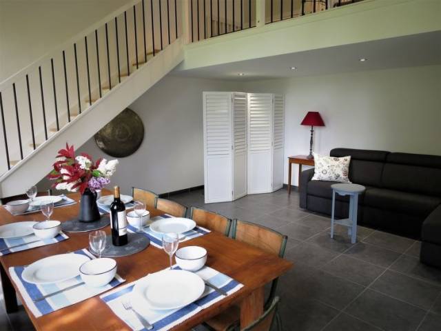 "La Vertheuillaise (VHL100)", casa 2 estancias 80 m2 en 2 plantas. Luminoso, con mobiliario bonito y agradable: salón-comedor con mesa de comedor, radio y CD. Salida al jardín. Grande cocina (lavavajillas, 2 placas de vitrocerámica, tostadora, hervidor de agua eléctrico, microondas, congelador, cafetera eléctrica) con chimenea (sólo con función decorativa). Salida al jardín. Ducha/WC, doble lavabo. Planta superior: altillo abuhardillado, abierto con 2 camas (90 cm, 190 cm de longitud). 1 dorm., abuhardillado, abierto con tragaluz con 1 cama de matrimonio (140 cm, 190 cm de longitud). Calefacción eléctrica. Muebles de terraza, tumbonas (4), trastero. El alojamiento dispone de: plancha. Internet (Wifi, gratis). A tener en cuenta: casa para no fumadores. Detector de humo.