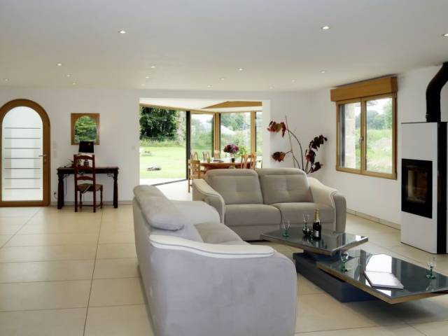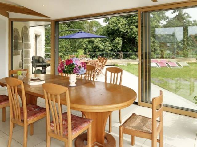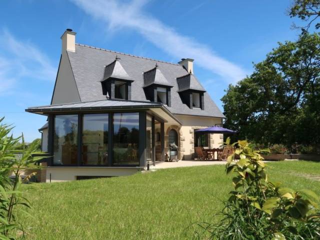 Casa unifamiliar "Les Menhirs", muy bonita, confortable, reformada en 2019, rodeada de árboles y prados. En el aldea Lann Tréman, a 2.6 km del centro de Ploumilliau, a 5.8 km del centro de Saint Michel-en-Grève, a 7.7 km del centro de Lannion, a 6.2 km del mar, en el campo. Comunitario: terreno 2'500 m2 (vallado). Privado: jardín bonito, cuidado 400 m2 con césped y plantas, terreno con hierba, piscina protegida (10 x 5 m, 140 cm de profundidad, Disponible por temporada: 03.Abr. - 27.Nov.). Tenis de mesa, muebles de jardín, aparcamiento (para 5 coches) en el mismo terreno. Aparcamiento cubierto. Tienda 2.6 km, playa de arena 6.2 km. El propietario vive en una parte independiente de la casa. "Les Menhirs (PML105)", casa 7 estancias 170 m2 en 2 plantas. Con mobiliario muy confortable y moderno: salón-comedor con balcón acristalado con mesa de comedor, TV satélite y radio. Salida a la terraza. 1 dorm. con 1 cama de matrimonio (160 cm, 200 cm de longitud), ducha. Cocina-comedor (horno, lavavajillas, 3 Placas de inducción, tostadora, hervidor de agua eléctrico, microondas, congelador, cafetera eléctrica, Cápsulas de café (Cafetière à dosettes) extra, isla de cocina) con barra americana, chimenea (sólo con función decorativa). WC separado. Planta superior: altillo abuhardillado, abierto con tragaluz con TV satélite. 1 dorm. con 1 cama de matrimonio (160 cm, 190 cm de longitud). 2 dorm., cada habitación con 2 camas (90 cm, 200 cm de longitud). 1 dorm. con 1 x 2 literas (90 cm, 200 cm de longitud). Ducha, WC separado. Calefacción. Terraza grande 40 m2. Barbacoa, tumbonas (8). El alojamiento dispone de: lavadora, secadora, trona, cuna. Internet (Wifi, gratis). A tener en cuenta: casa para no fumadores. 2 mascotas / perros. Detector de humo.
