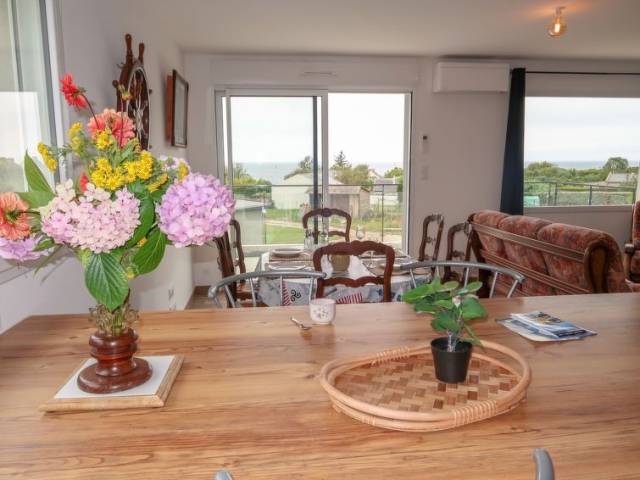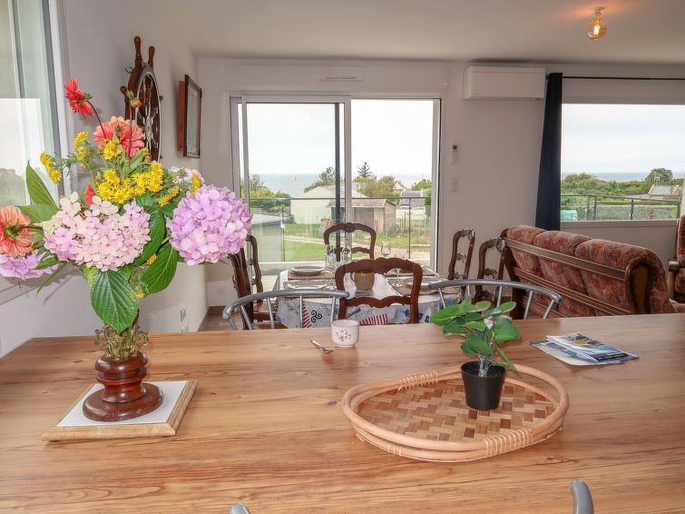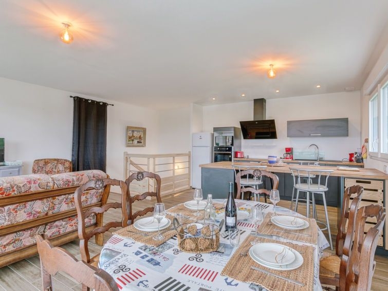 "Trois-Mâts", casa 3 estancias 68 m2 en 2 plantas, orientación suroeste. Vivienda adecuada para 4 adultos. Luminoso, con mobiliario bonito y agradable: 1 dorm. con 1 cama de matrimonio (140 cm, 190 cm de longitud). Salida a la terraza. 1 dorm. con 2 camas (90 cm, 190 cm de longitud). Salida a la terraza. Ducha, WC separado, doble lavabo. Calefacción eléctrica. Planta superior: salón-comedor con mesa de comedor, TV satélite, canales internacionales, pantalla plana y aire acondicionado. Salida al balcón. Cocina abierta (3 Placas de inducción, tostadora, hervidor de agua eléctrico, microondas, congelador, cafetera eléctrica, isla de cocina) con barra americana. Salida al balcón. Balcón 20 m2, orientación sur y orientación oeste, terraza 20 m2, orientación sur y orientación oeste. Muebles de terraza, muebles de balcón, barbacoa (portátil), tumbonas (2). Vista al mar. El alojamiento dispone de: lavadora, plancha. A tener en cuenta: casa para no fumadores. Permitido máximo 1 mascota / perro. Detector de humo.