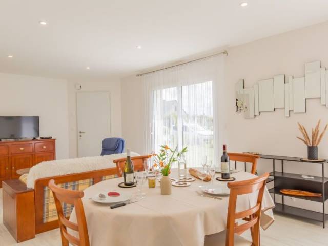 Casa unifamiliar "Kervennou", agradable del año 2022. A 1 km del centro de Saint Jean-du-Doigt, a 3.6 km del centro de Plougasnou, a 7 km del centro de Lanmeur, a 1.5 km del mar, a 1.5 km de la playa. Privado: terreno 840 m2, jardín (no está vallado) con plantas, aparcamiento (para 2 coches) en el mismo terreno. Tienda 4 km, supermercado 3.3 km, restaurante 1.4 km, panadería 3.3 km, playa de arena "Plage de St.Jean-du-Doigt" 1.5 km, centro de buceo 12 km. Campo de golf (18 hoyos) 40 km, escuela de surf 10 km, escuela de vela 10 km, rutas de senderismo desde la casa 500 m. Atracciones en los alrededores: Morlaix 18 km, Lannion 32 km, Perros-Guirec, Côte du Granit Rose 44 km, Carantec 35 km, St.Pol de Léon 36 km, Roscoff, Jardin exotique 45 km. "Kervennou", casa 4 estancias 92 m2. Espacioso y luminoso, con mobiliario bonito y agradable: salón-comedor 50 m2, grande con mesa de comedor, TV y pantalla plana. Salida al jardín. 3 dorm., cada habitación con 1 cama de matrimonio (140 cm, 190 cm de longitud). Cocina abierta (horno, lavavajillas, 4 fuegos, tostadora, hervidor de agua eléctrico, microondas, cafetera eléctrica). Ducha, WC separado, doble lavabo. Calefacción eléctrica, calefacción por suelo. Terraza, orientación sur. Muebles de terraza, barbacoa (portátil), tumbonas (2). El alojamiento dispone de: lavadora, secadora. Internet (Wifi, gratis). A tener en cuenta: casa para no fumadores. Detector de humo. Oferta de un particular según el art. 155, IV del CGI.