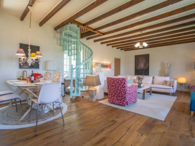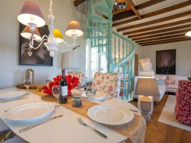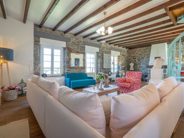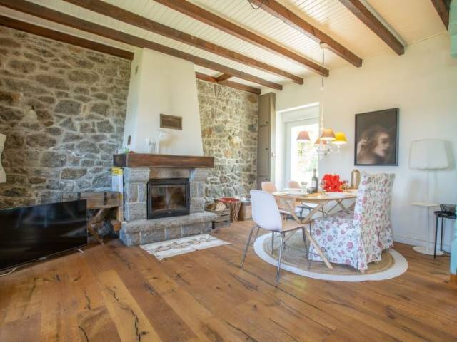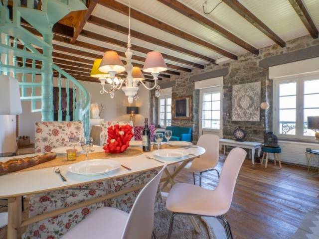 "Mon Amour", casa 4 estancias 100 m2. Con mobiliario bonito y romántico: salón-comedor 55 m2, grande con chimenea y TV (pantalla plana), DVD. Salida a la terraza. Cocina abierta 15 m2 (horno, lavavajillas, 4 fuegos, tostadora, congelador, cafetera eléctrica) con pequena mesa de comedor. Salida a la terraza. Planta superior: (escalera de caracol) 2 dorm., cada habitación con 1 cama de matrimonio (160 cm, 200 cm de longitud). 1 dorm. con 1 cama (90 cm, 190 cm de longitud). Baño/WC. Calefacción eléctrica. Vista parcial al mar. El alojamiento dispone de: lavadora, plancha, secador de pelo. A tener en cuenta: casa para no fumadores. 1 mascota / perro.
