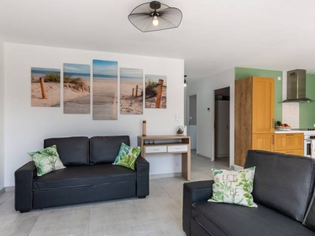 "Palet Breton", casa 4 estancias 80 m2. Luminoso, con mobiliario confortable y moderno: salón 40 m2 con mesa de comedor, TV y canales internacionales (pantalla plana). Salida a la terraza. 1 dorm. con 1 cama de matrimonio (160 cm, 200 cm de longitud). 1 dorm. con 2 camas (90 cm, 200 cm de longitud). Cocina abierta (horno, lavavajillas, 4 placas de vitrocerámica, tostadora, hervidor de agua eléctrico, microondas, congelador, cafetera eléctrica). Ducha/WC, WC separado, doble lavabo, bañera de hidromasaje, Sauna. Calefacción eléctrica. Terraza 20 m2, orientación suroeste. Muebles de terraza, tumbonas (4). El alojamiento dispone de: lavadora, secadora, sauna, plancha, trona. Internet (Wifi, gratis). A tener en cuenta: casa para no fumadores. 1 mascota / perro. Detector de humo. Oferta de un particular según el art. 155, IV del CGI.