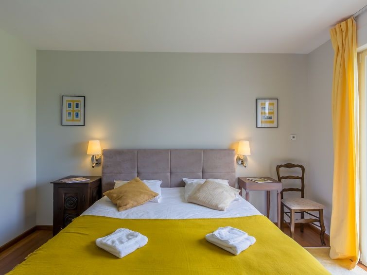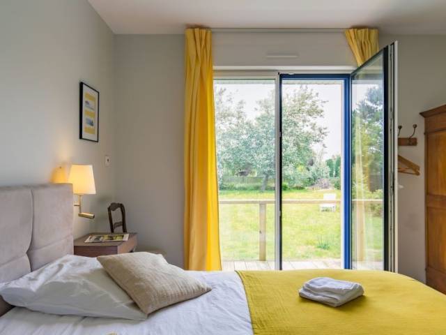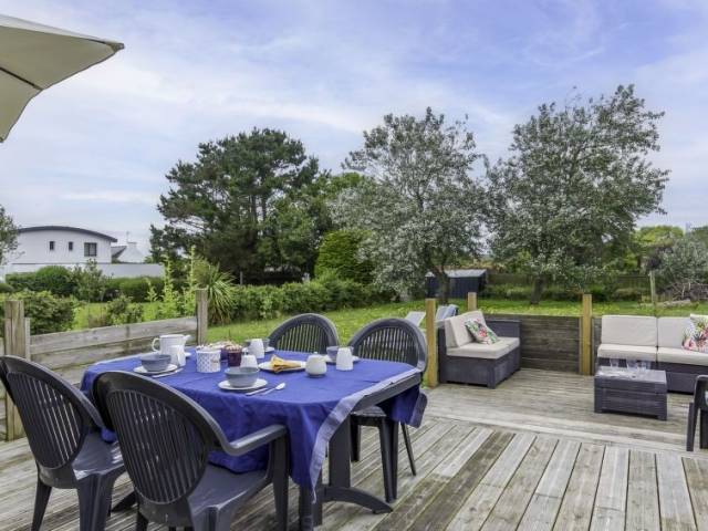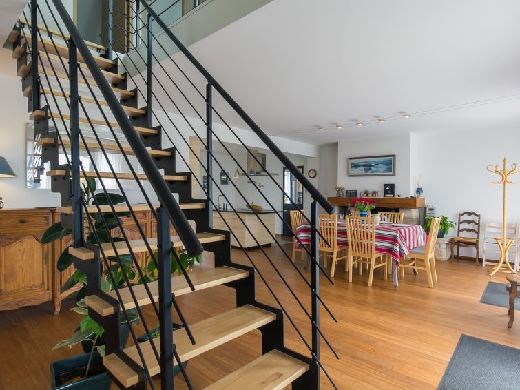 "La Grève bleue", casa 5 estancias. Vivienda adecuada para 6 adultos + 2 niños. Espacioso y luminoso, completamente reformada en 2021, con mobiliario confortable y moderno: salón-comedor grande con chimenea, mesa de comedor, TV digital y pantalla plana. Salida al jardín, a la terraza. 1 dorm. con 1 cama de matrimonio (160 cm, 200 cm de longitud). Cocina (horno, lavavajillas, 3 Placas de inducción, tostadora, hervidor de agua eléctrico, microondas, congelador, cafetera eléctrica, isla de cocina) con mesa de comedor. Ducha/WC. Calefacción eléctrica. Planta superior: 1 dorm. con 1 cama de matrimonio (160 cm, 200 cm de longitud). 1 dorm. con 2 camas (80 cm, 200 cm de longitud). 1 dorm. para niños con 1 x 2 literas (90 cm, 190 cm de longitud). Ducha, WC separado. Balcón pequeño 4 m2, orientación sur y orientación oeste, terraza 16 m2, orientación sur y orientación oeste. Muebles de terraza, muebles de balcón, barbacoa (portátil), tumbonas (2). Vista lejana al mar. El alojamiento dispone de: lavadora, cuna, cómoda con cambiador para bebés. Internet (Wifi, gratis). A tener en cuenta: adecuado para familias. Casa para no fumadores. Detector de humo.